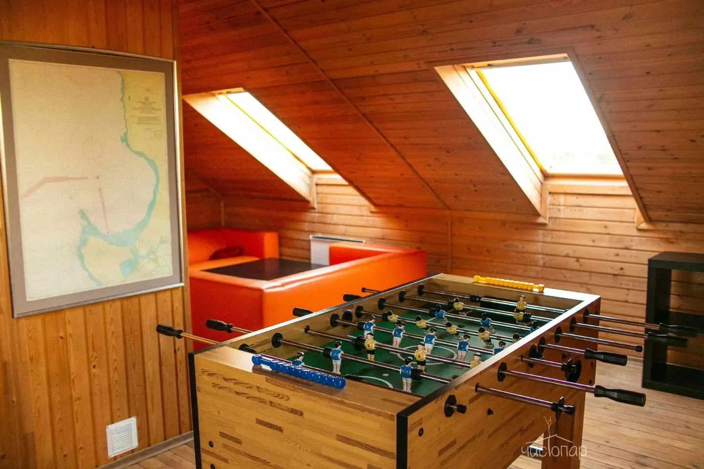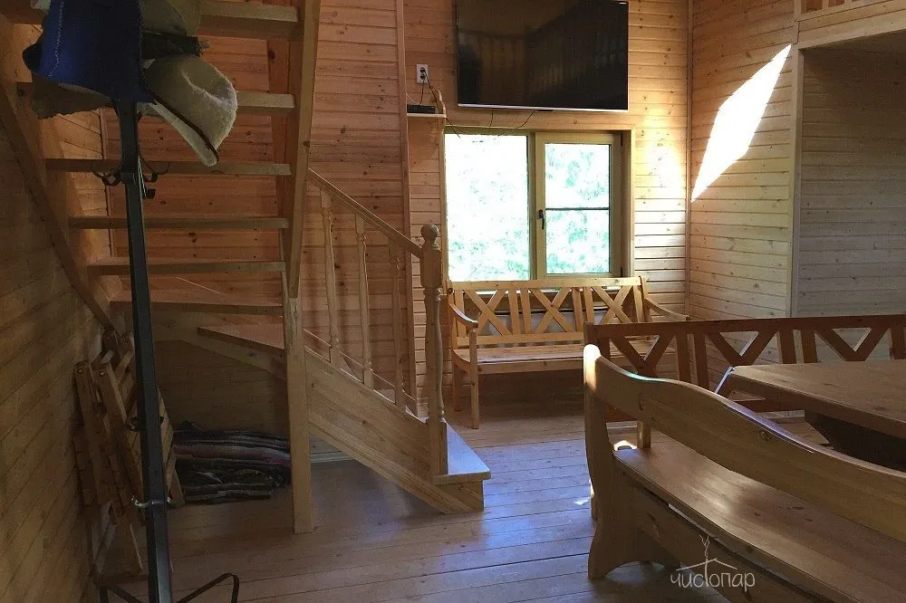 На берегу реки - русская парная на дровах, купель, 2 зоны отдыха, мини кухня, цифровое ТВ, караоке, настольный хоккей, открытая летняя веранда, мангал.