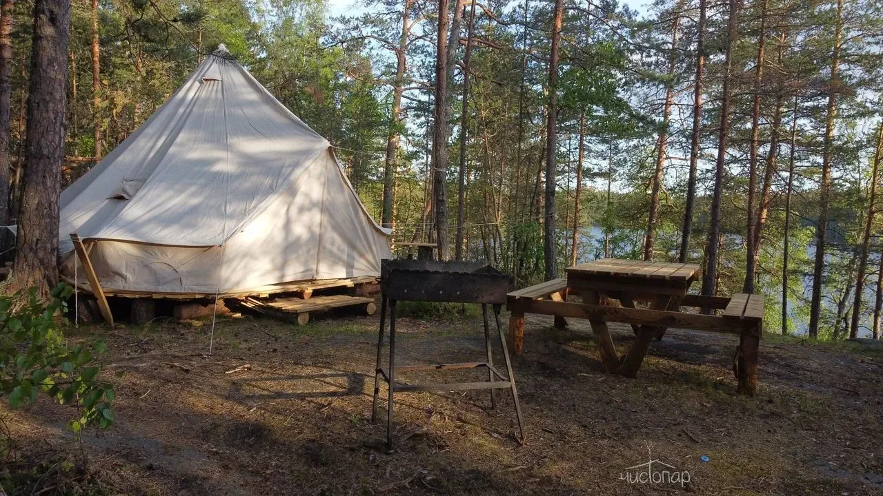 Комфортный шатер №1, №2, №3В кемпинге есть электричество, холодильник, плита и водопровод. У каждого шатра свой мангал, стол и лавки. Машину можно оставить в 20 метрах от кемпинга.