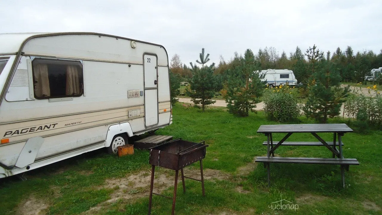 Отдельно стоящий автофургон с площадкой для барбекю с мангалом и беседкой в тех автофургонах, что у озера. Туалет и душ в отдельном здании. В СТОИМОСТЬ АВТОФУРГОНА ВХОДЯТ:
