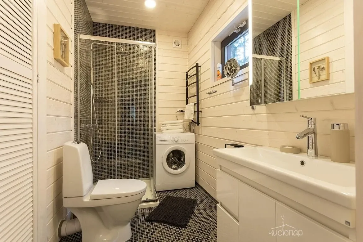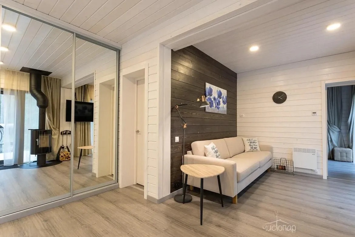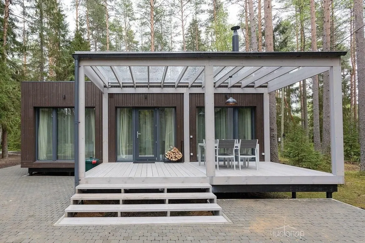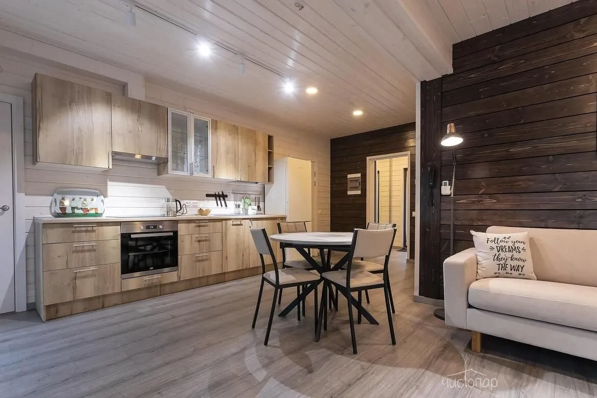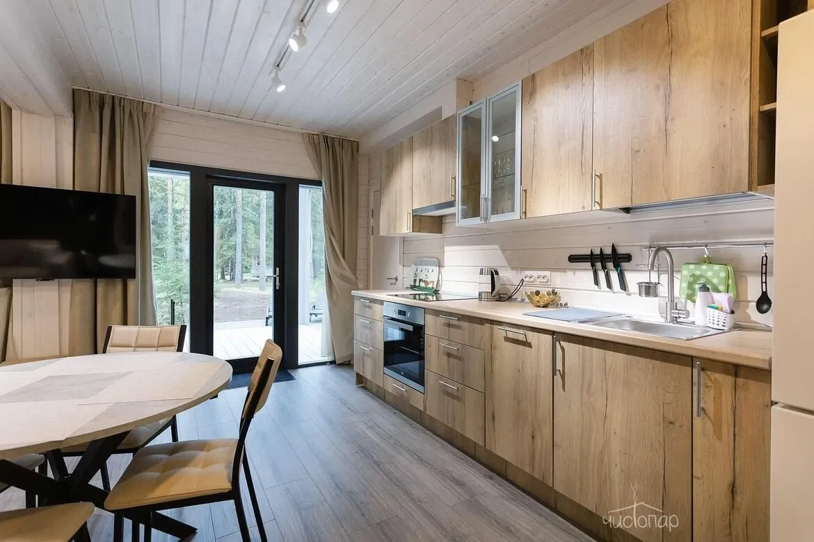 Новый коттедж 80м2 в скандинавском стиле для спокойного загородного отдыха с комфортом разместит семью или компанию до 4 человек. В одноэтажном коттедже просторная кухня-гостиная и две изолированные спальни с большими двуспальными кроватями. Кухня оборудована всей необходимой техникой и посудой для приготовления еды и хранения продуктов — посудомоечной машиной, микроволновкой, плитой, холодильником. В гостиной уютный камин, телевизор, удобный диван. Санузел с душевой кабиной, теплым полом, феном и стиральной машиной. Из панорамных окон открывается великолепный вид на шикарную природу пригорода Санкт-Петербурга. Терраса оборудована летней мебелью, где можно удобно разместиться для совместного досуга.