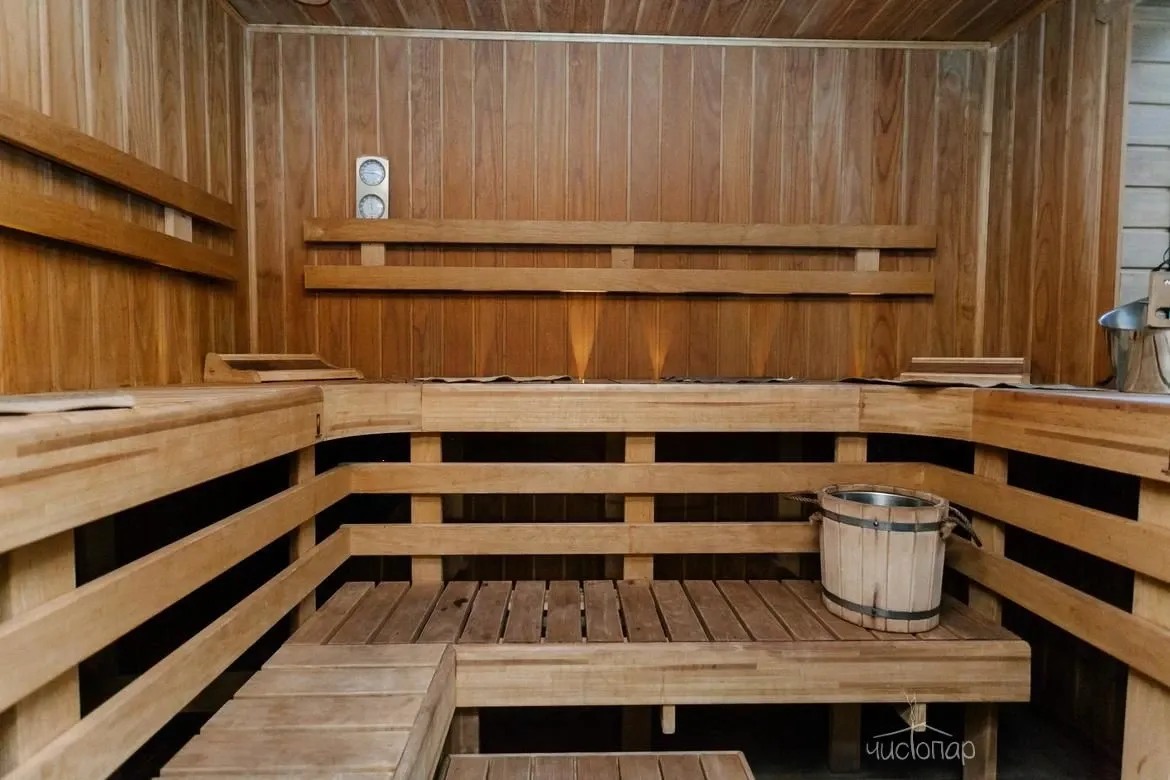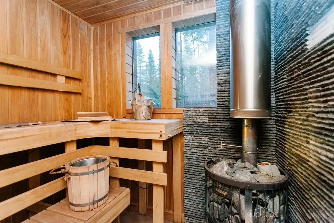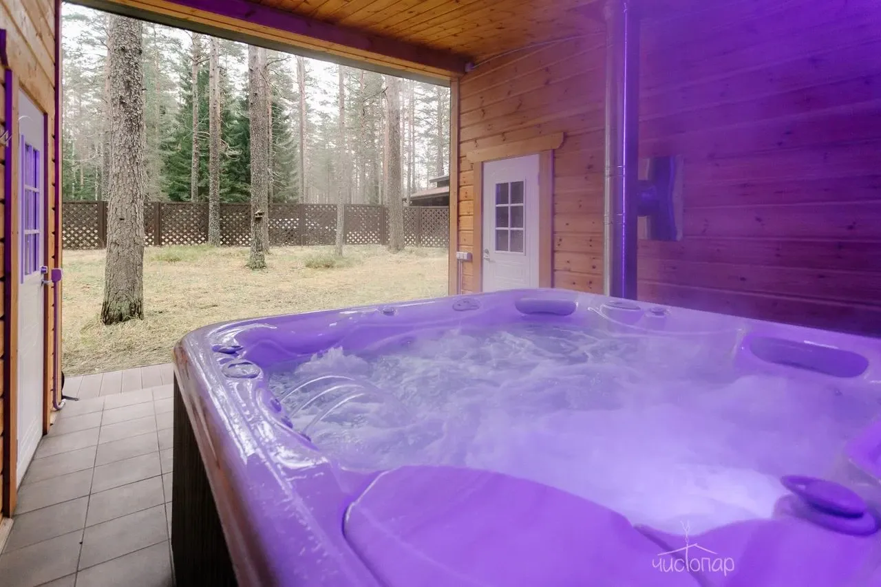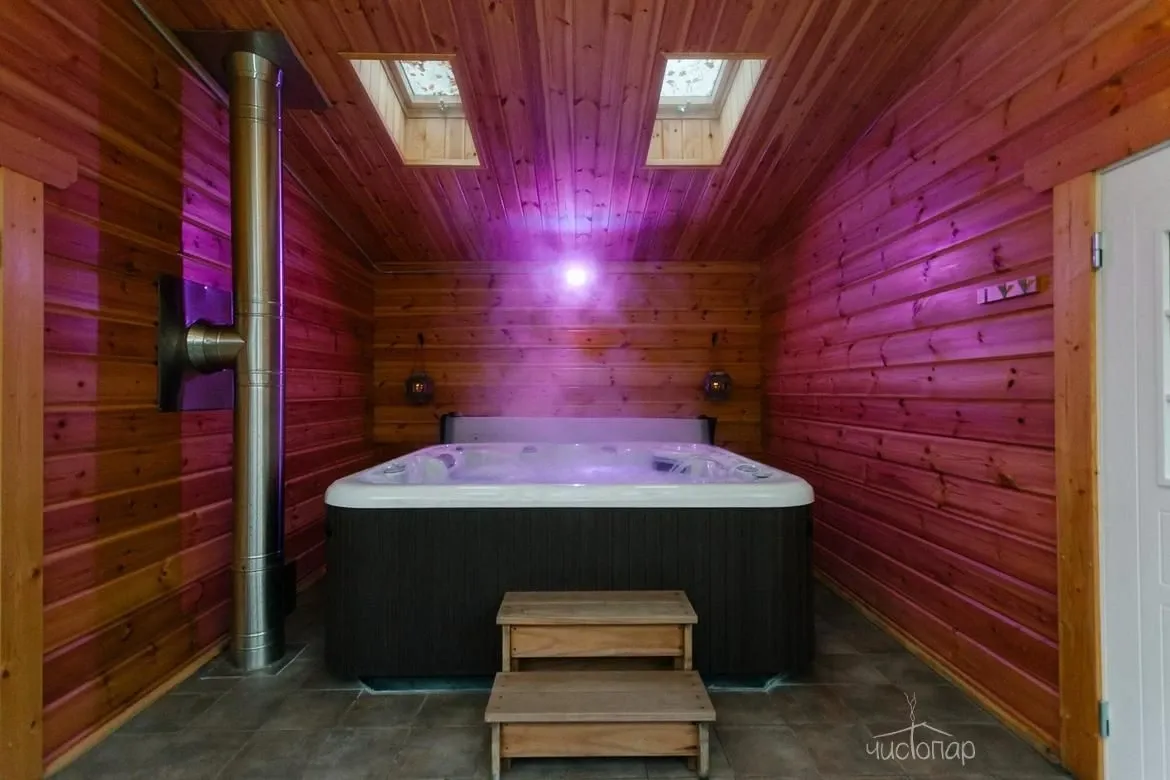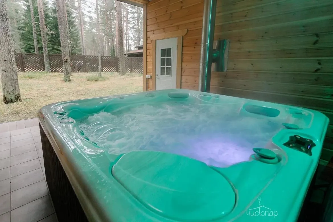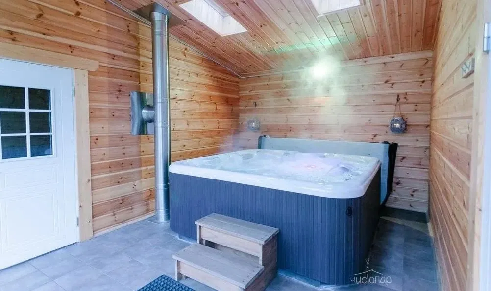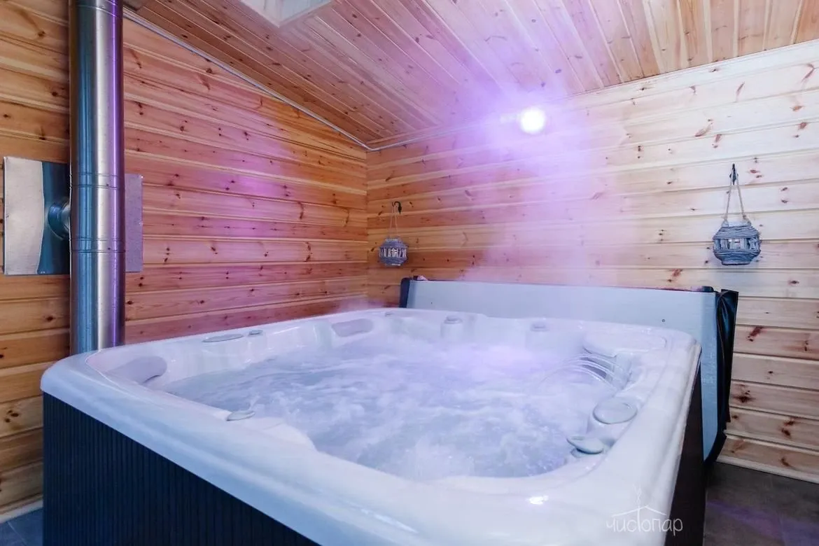 Здесь можно снять банный комплекс на дровах со СПА-джакузи на открытом воздухе. К услугам гостей парилка с веником, ведро для обливания с ледяной водой, джакузи с тёплой водой и просторная комната отдыха с чаем и камином. Дополнительно к бане можно арендовать гриль-домик. Баня доступна как при аренде коттеджа, так и отдельно.