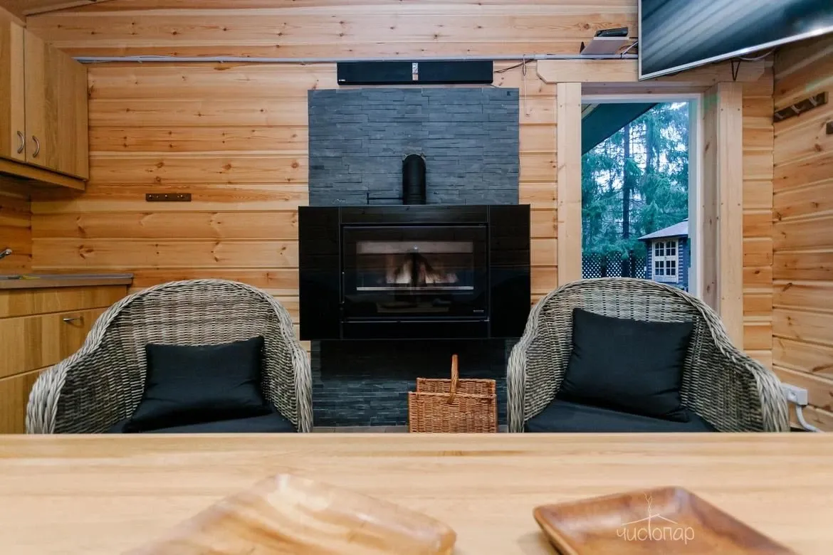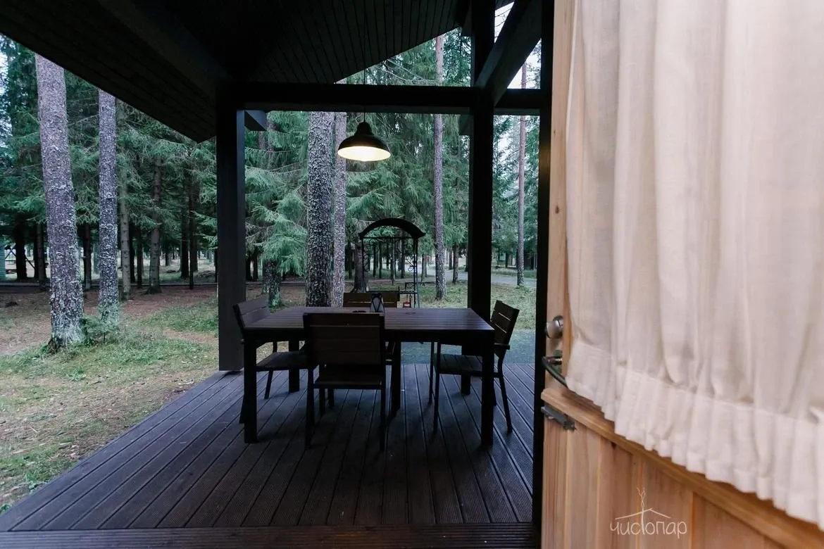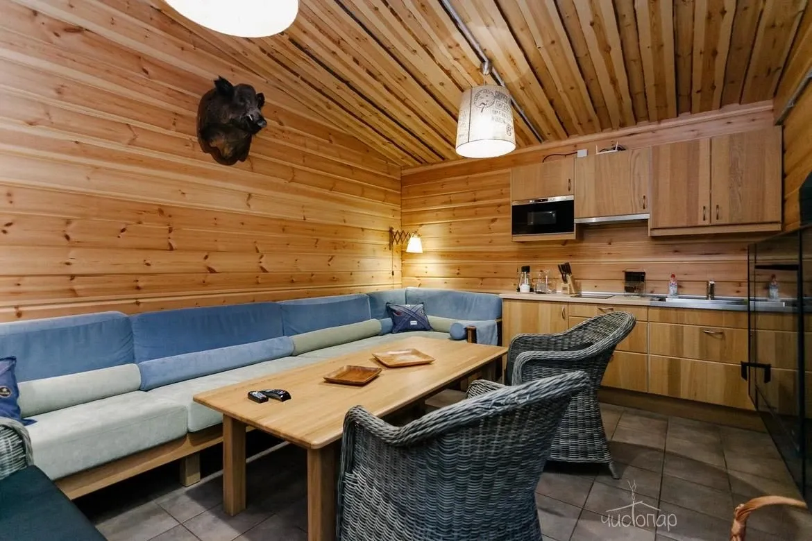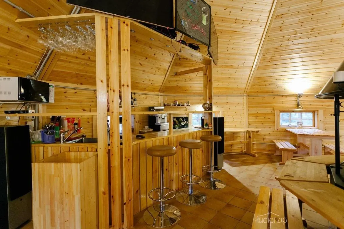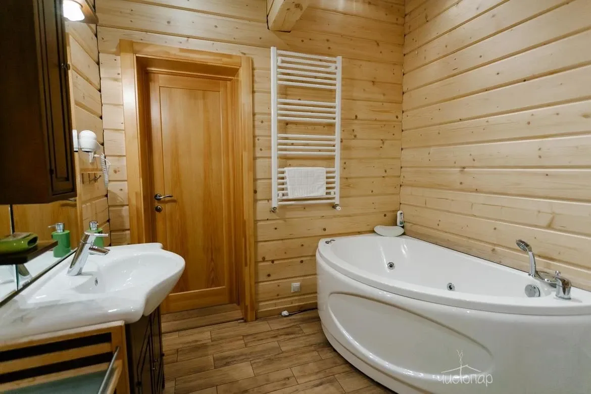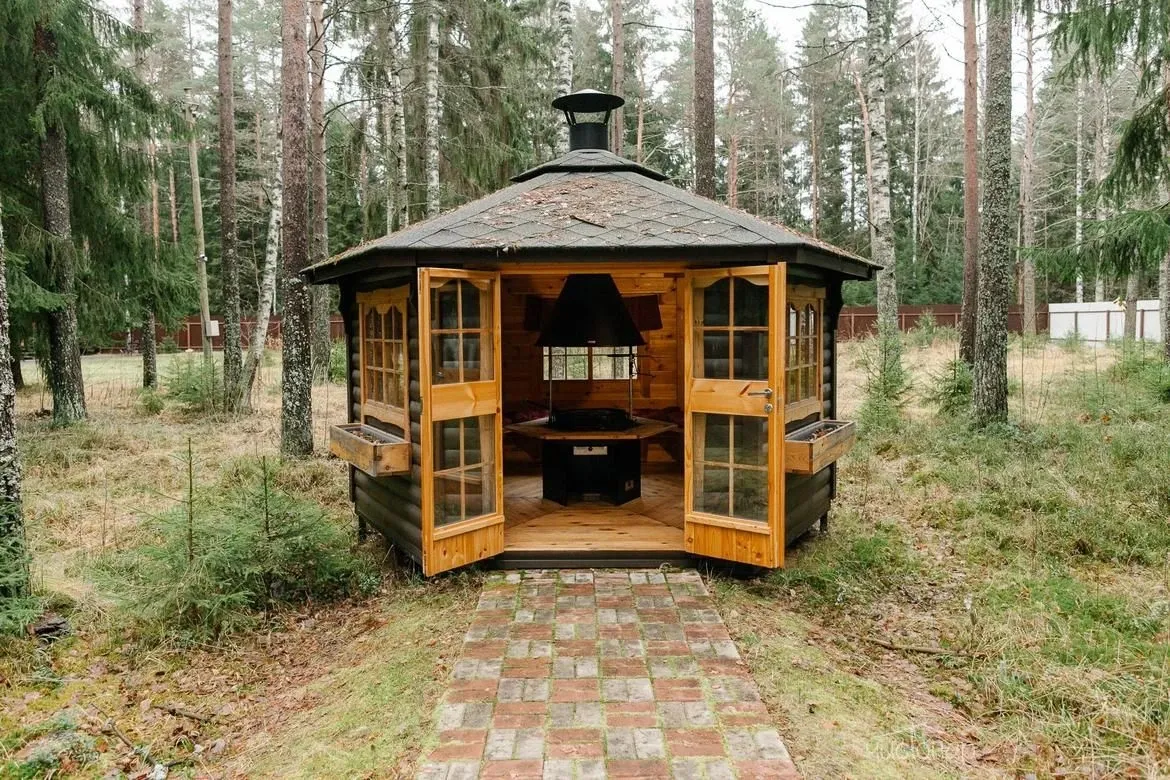 Здесь можно снять банный комплекс на дровах со СПА-джакузи на открытом воздухе. К услугам гостей парилка с веником, ведро для обливания с ледяной водой, джакузи с тёплой водой и просторная комната отдыха с чаем и камином. Дополнительно к бане можно арендовать гриль-домик. Баня доступна как при аренде коттеджа, так и отдельно.