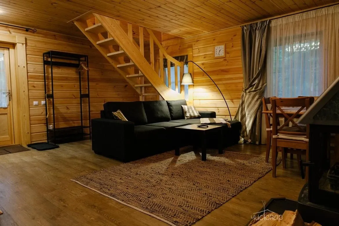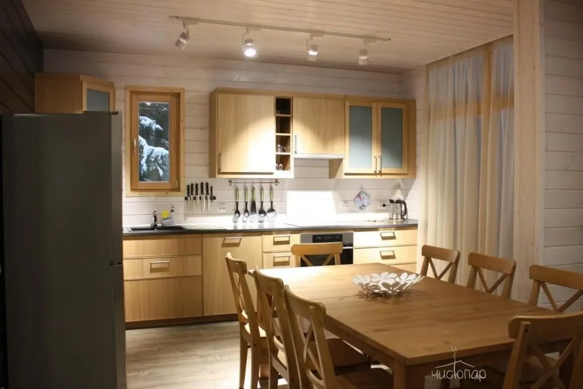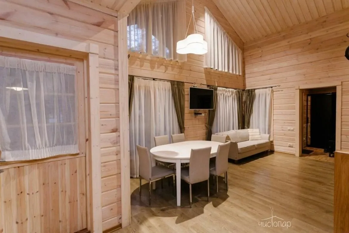 Коттедж выполнен из натуральных материалов и оформлен дизайнерами в загородном стиле для максимальной аутентичности. Дом очень тёплый и пригоден для проживания в любое время года.Читать далее