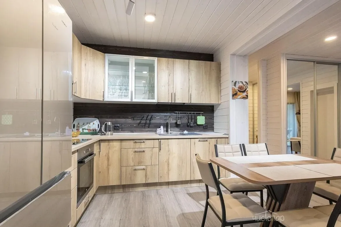 Коттедж отделан современными высококачественными материалами и оформлен дизайнерами в загородном стиле для максимальной аутентичности. Дом тёплый и пригоден для проживания в любое время года.Читать далее