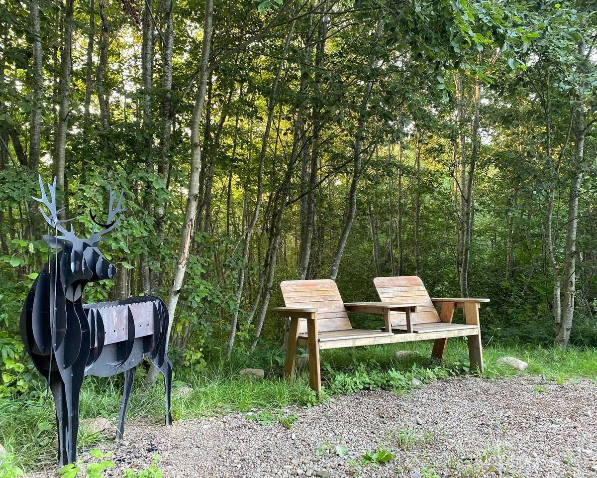 У каждого коттеджа расположена освещенная мангальная зона и уличной мебелью, пространство зонировано ландшафтом и растениями.