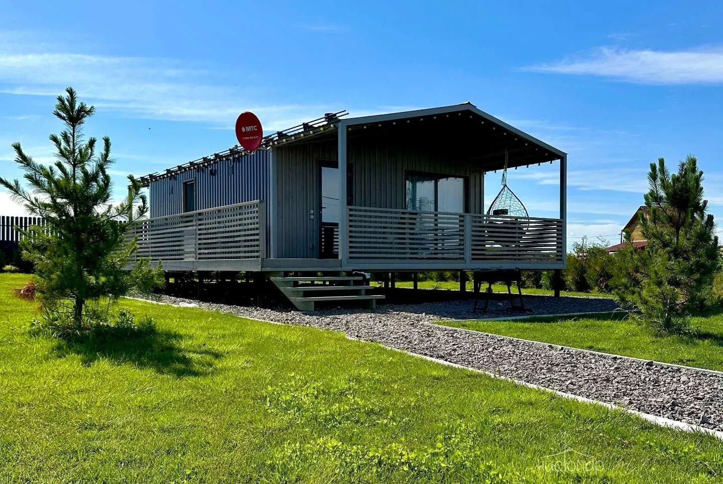 - Туалет и душ. Крытая терраса, Кресло подвесное, мангальная зона.