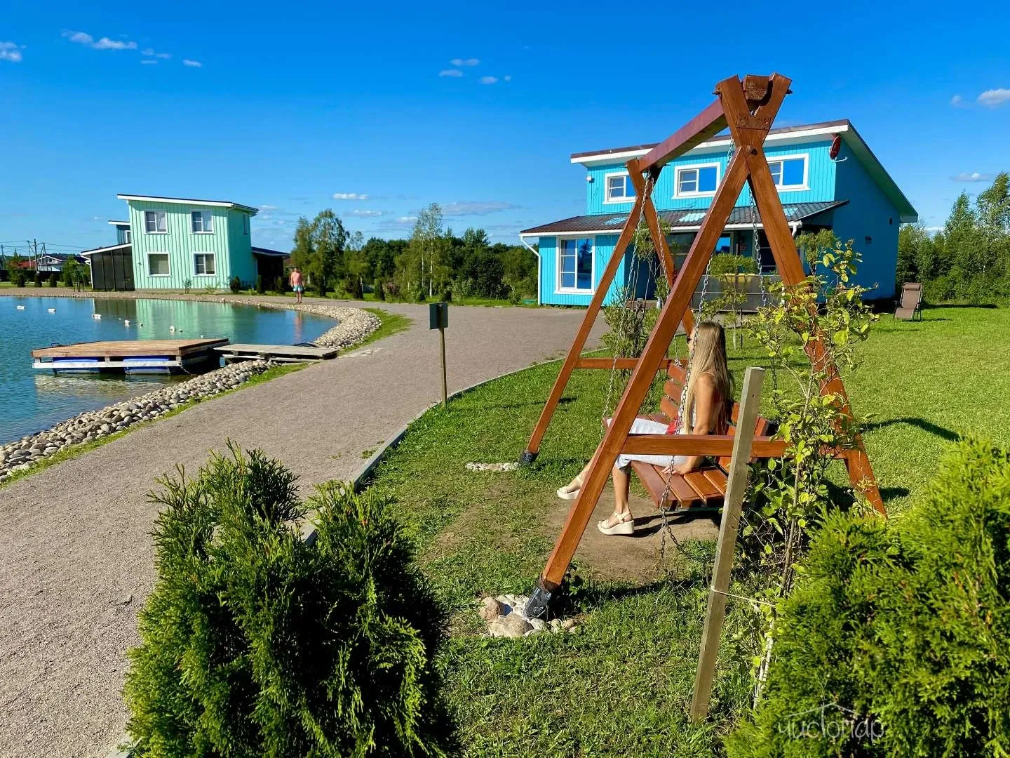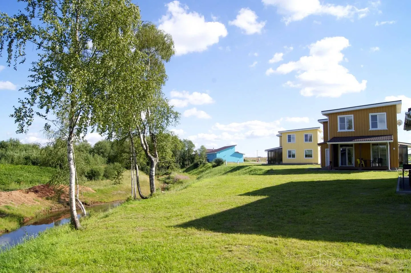 Для размещения подготовлены уютные коттеджи с собственной террасой. Они обустроены удобной мебелью, Wi-Fi, телевизором и собственной ванной комнатой. Около домиков оборудована зона барбекю.