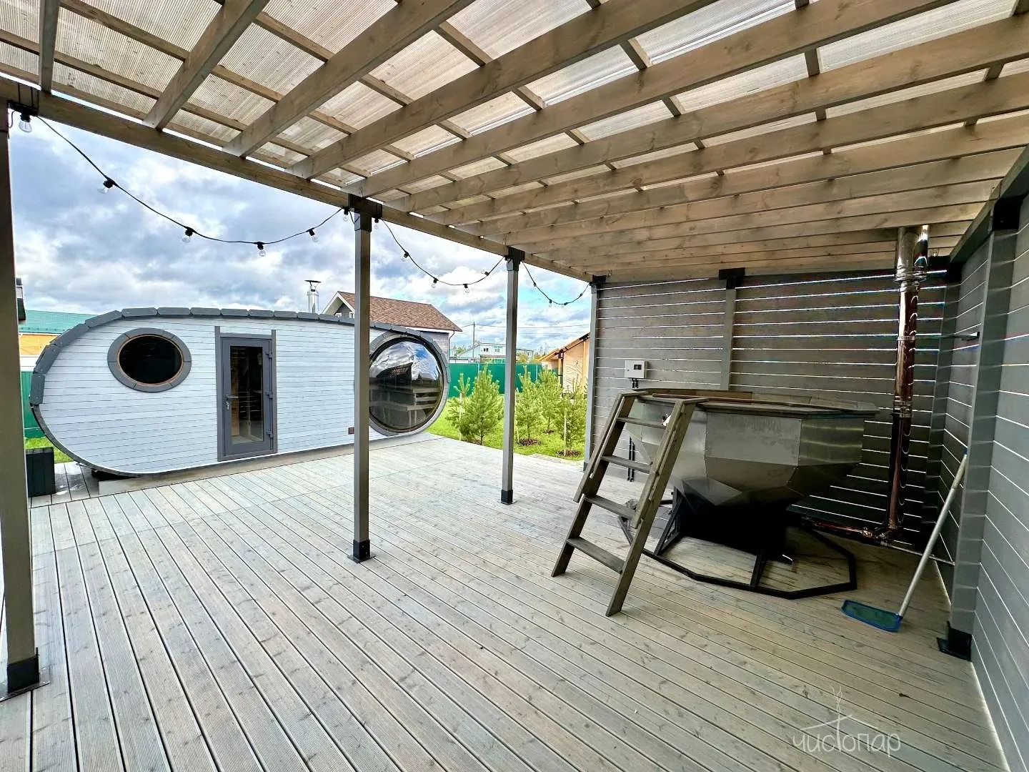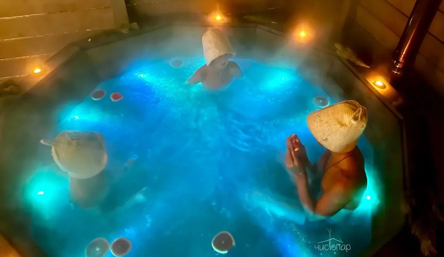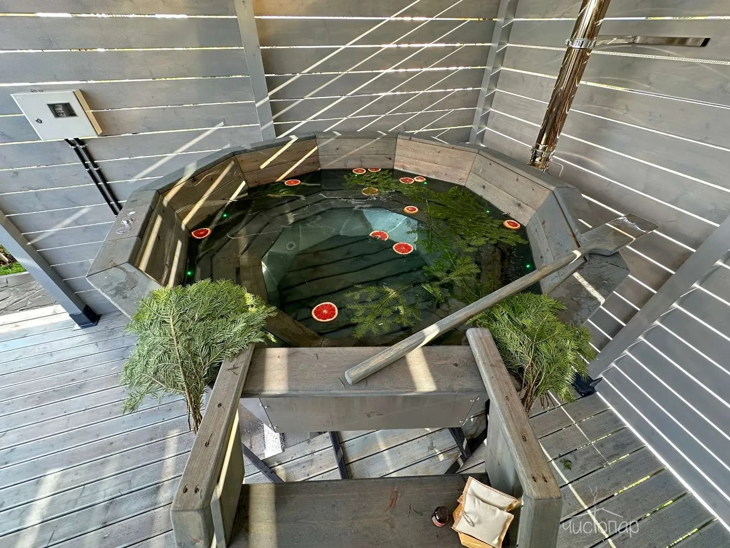 - Банный чан с гидромассажем и подсветкой