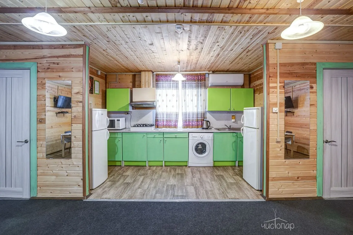 На базе отдыха "Подворье" гости могут разместиться в комфортабельных деревянных коттеджах от 3 до 5 мест со всеми удобствами. Комнаты меблированы, оборудованы современной бытовой техникой.