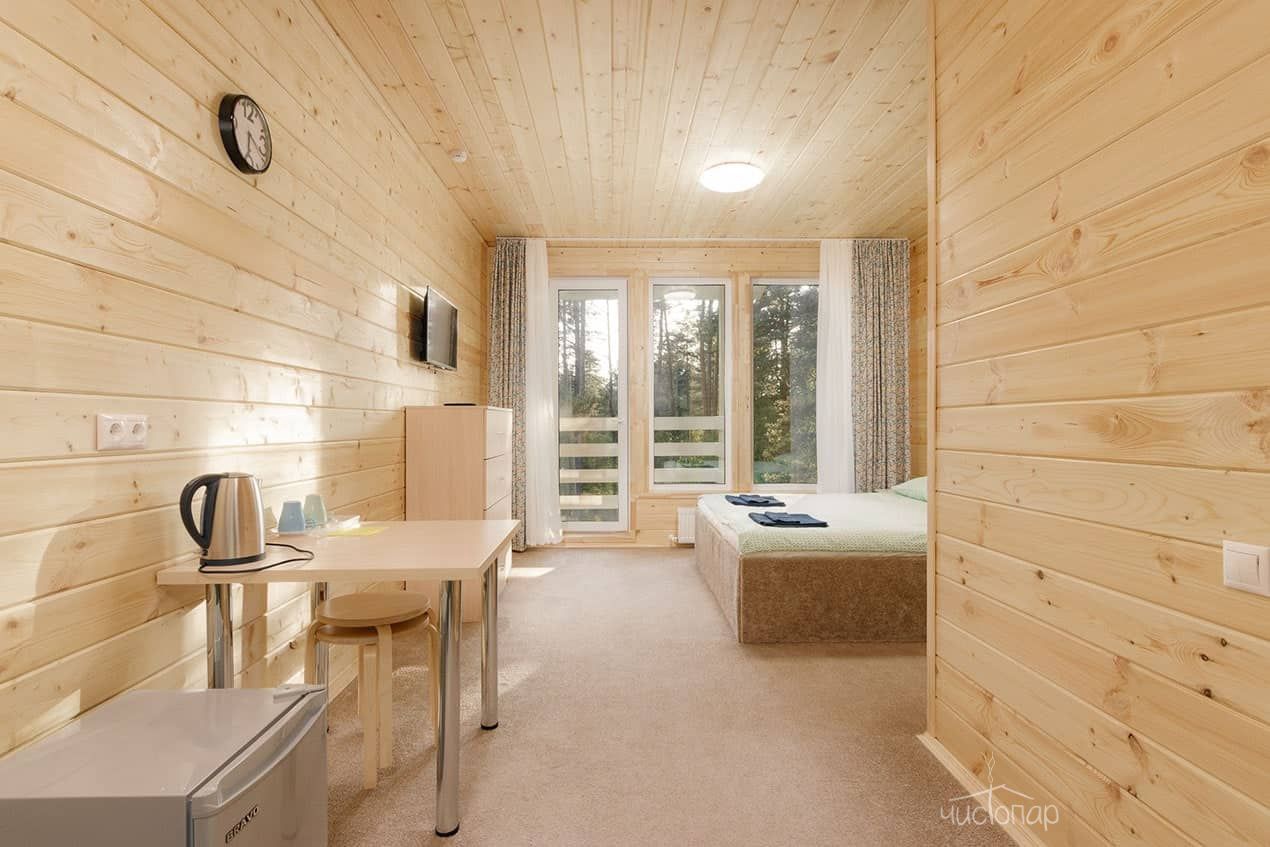 На турбазе предлагаются различные варианты размещения, и независимо от выбора, все домики оборудованы всем необходимым для комфортного отдыха.