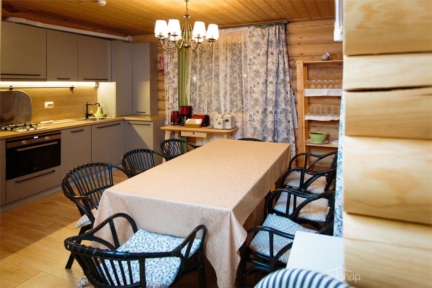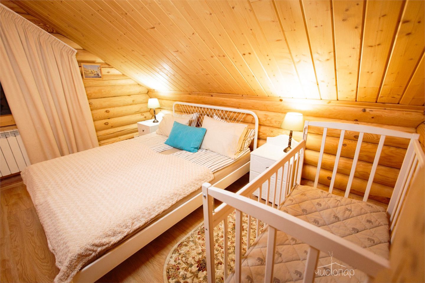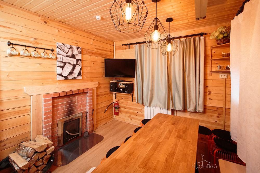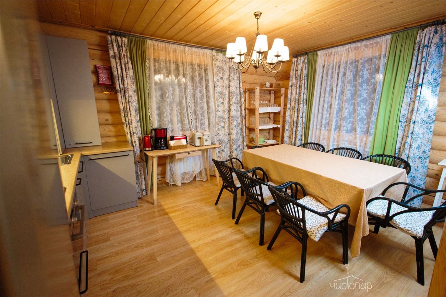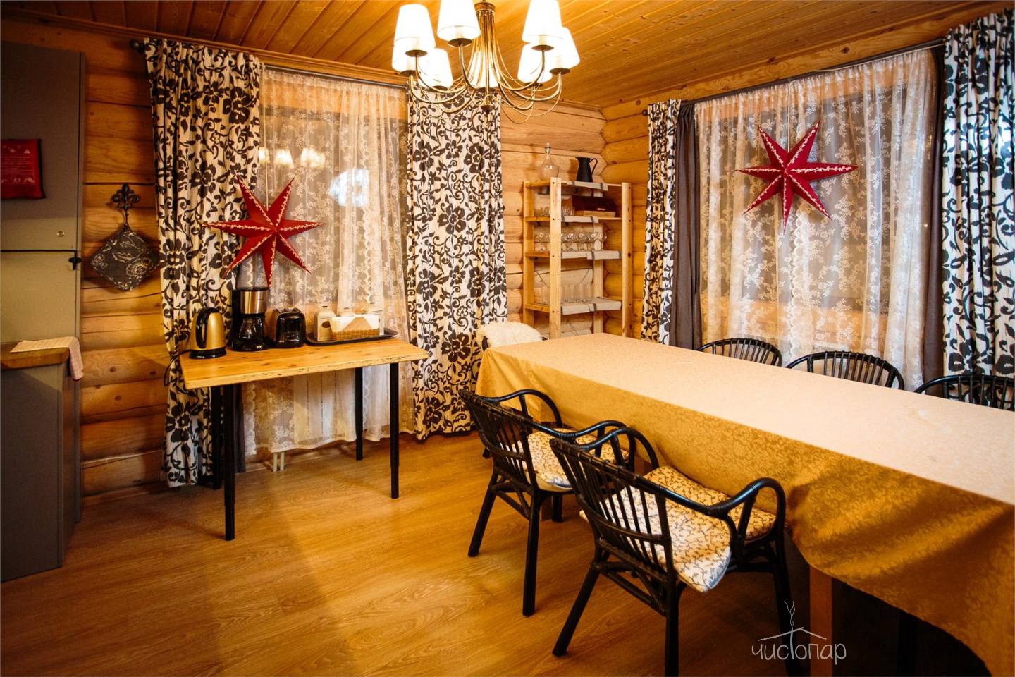 Самый большой, по количеству размещения гостей, коттедж. В нем может разместиться 15 человек, без учета гостевой зоны - есть спальня для одного гостя и для восьми гостей одновременно. Он идеально подходит для мастер-классов и тренингов, а также для шумной молодежной вечеринки.