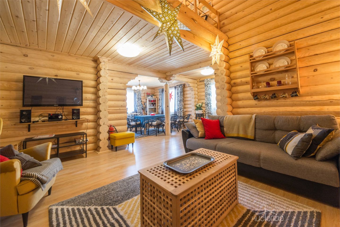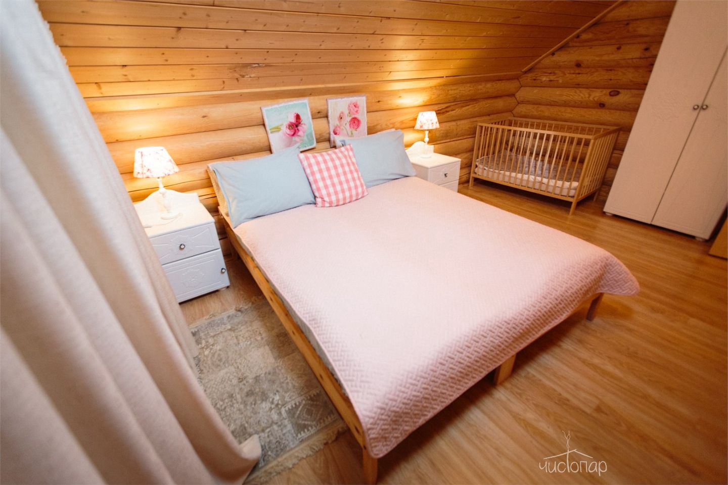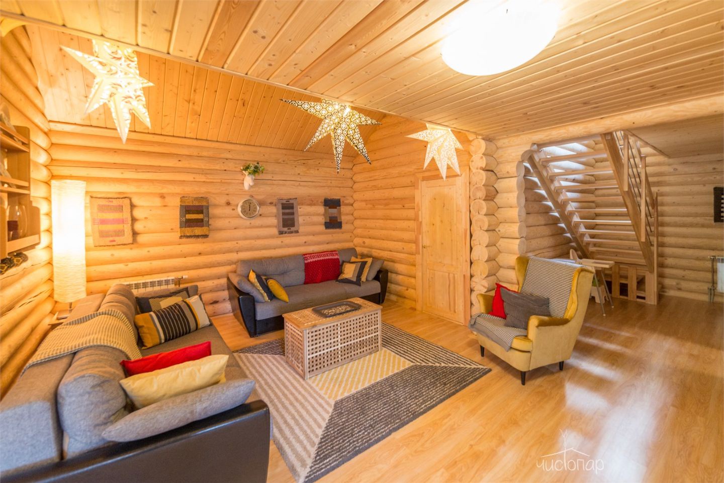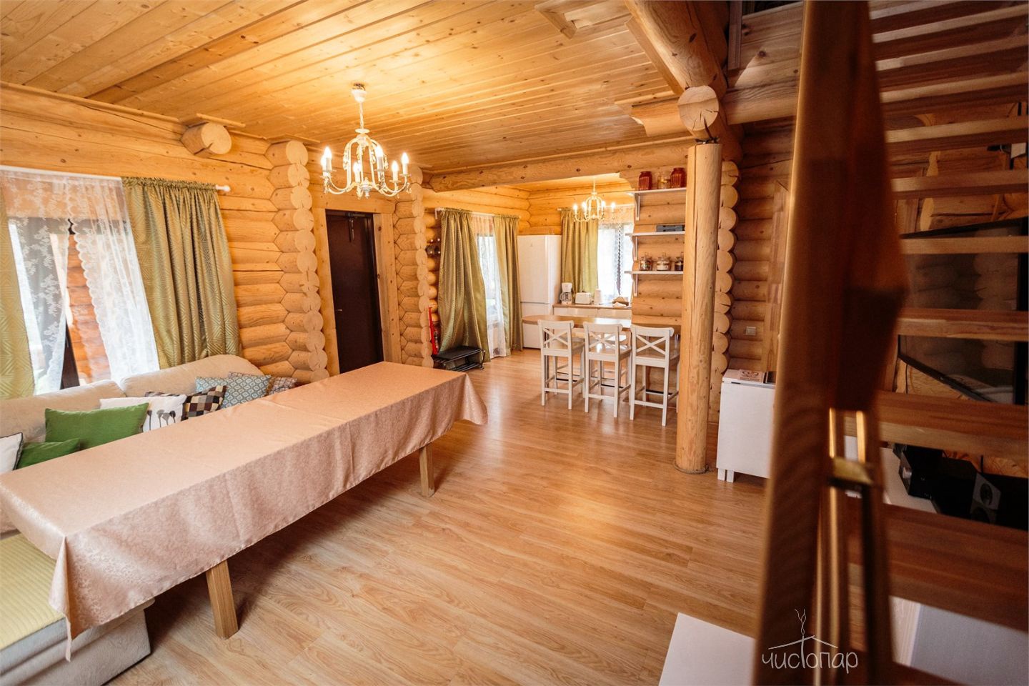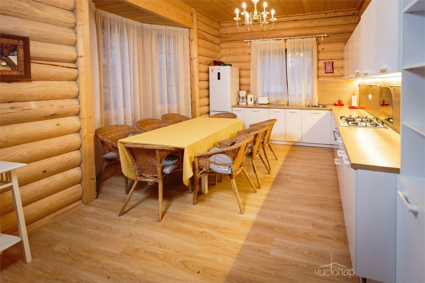 Самый большой, по количеству размещения гостей, коттедж. В нем может разместиться 15 человек, без учета гостевой зоны - есть спальня для одного гостя и для восьми гостей одновременно. Он идеально подходит для мастер-классов и тренингов, а также для шумной молодежной вечеринки.