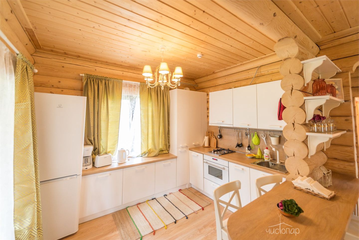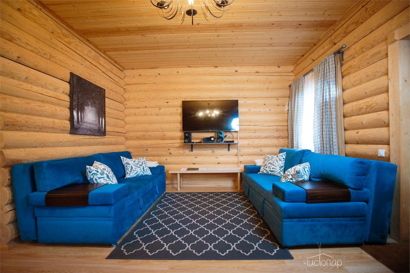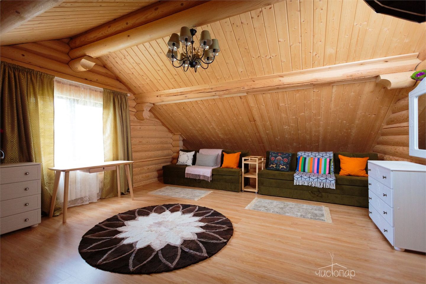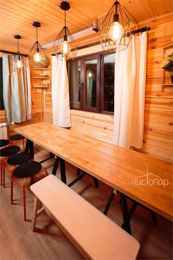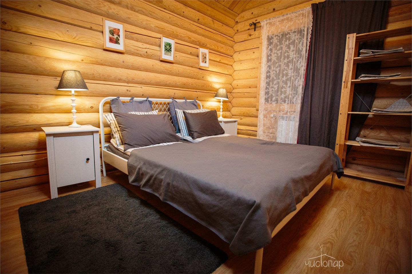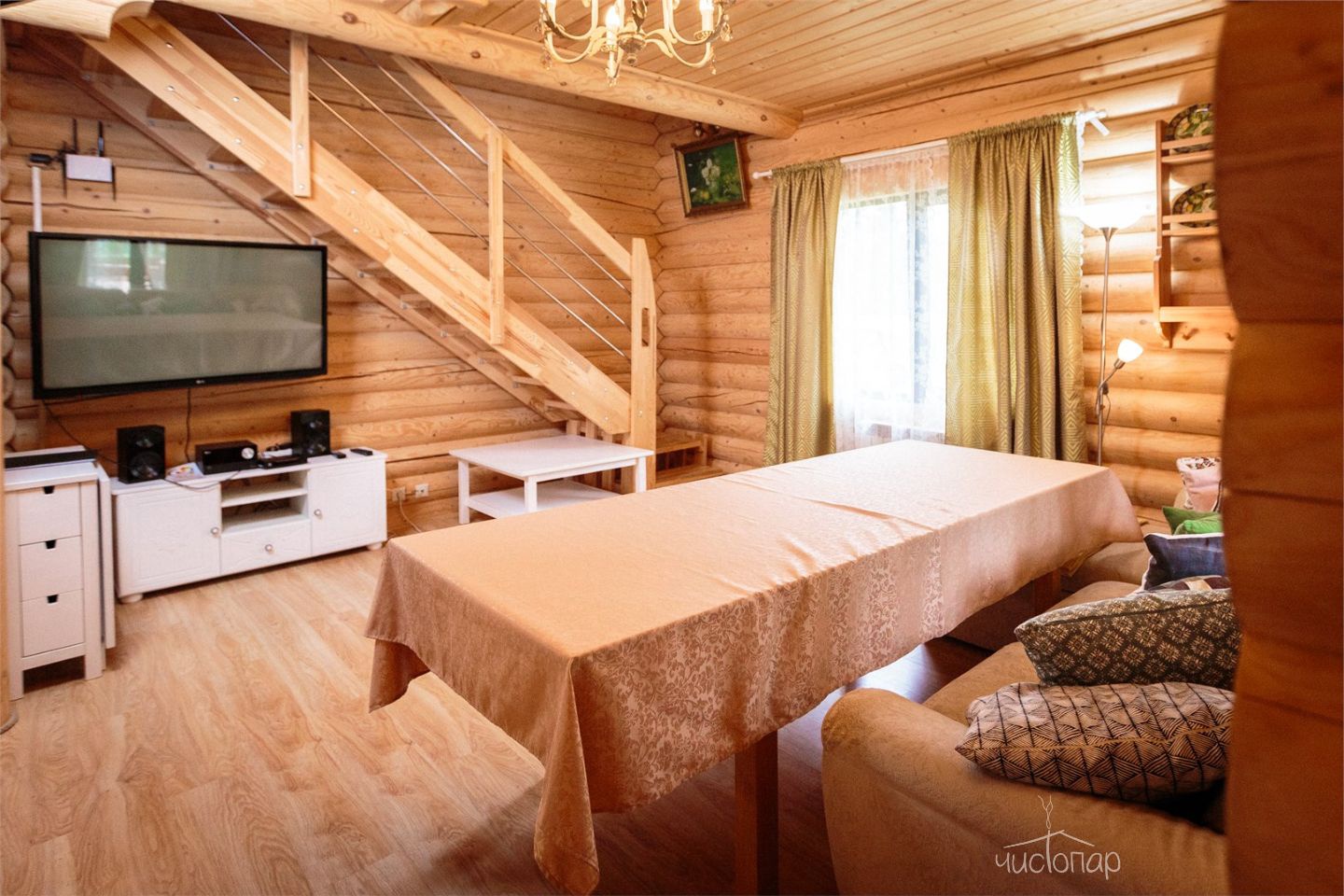 Самый большой, по количеству размещения гостей, коттедж. В нем может разместиться 15 человек, без учета гостевой зоны - есть спальня для одного гостя и для восьми гостей одновременно. Он идеально подходит для мастер-классов и тренингов, а также для шумной молодежной вечеринки.