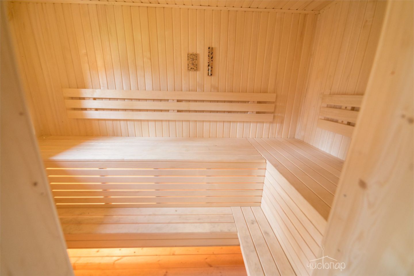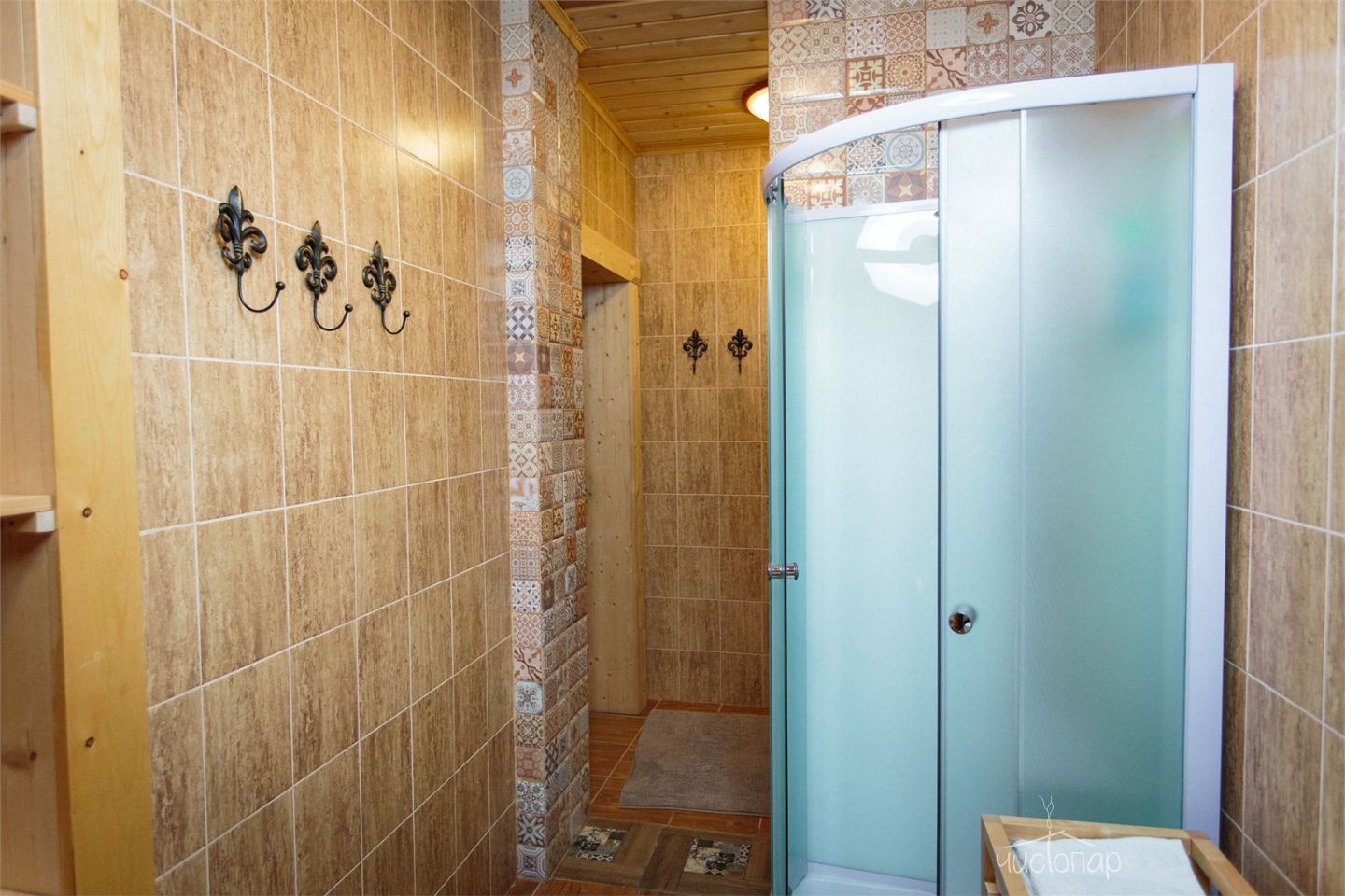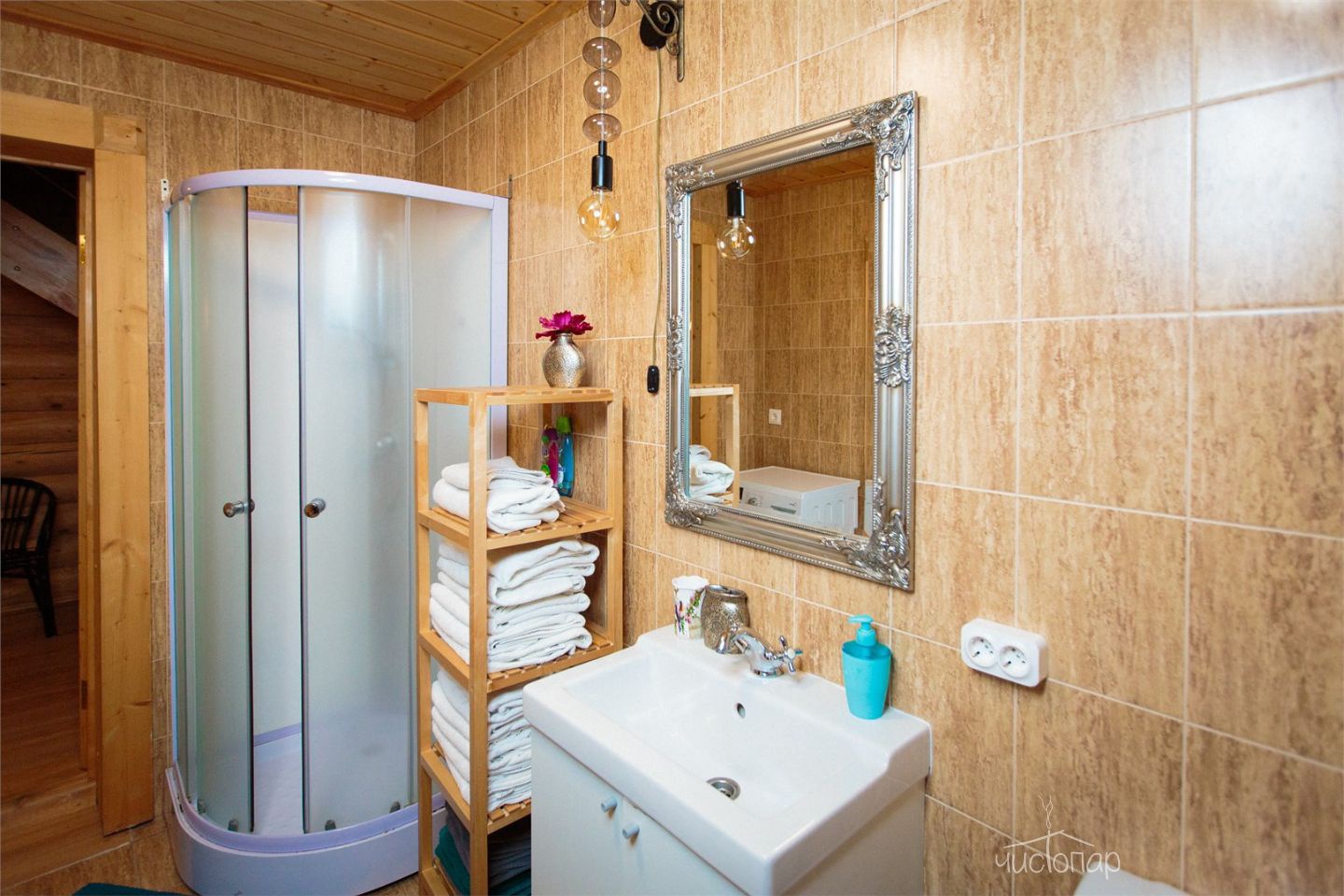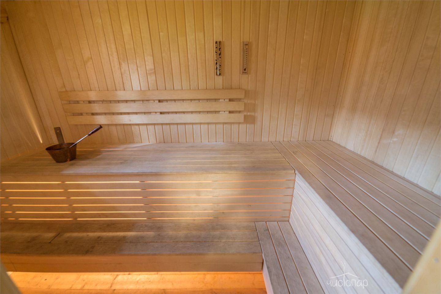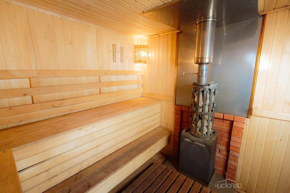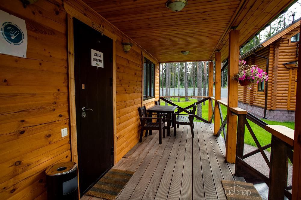 На территории комплекса отдыха есть русская баня на дровах с каменкой, в которой одновременно могут находиться до 10 - 12 человек. В бане есть плазма и музыкальная система. Также есть три душевые и веранда с мебелью для наслаждения природой.