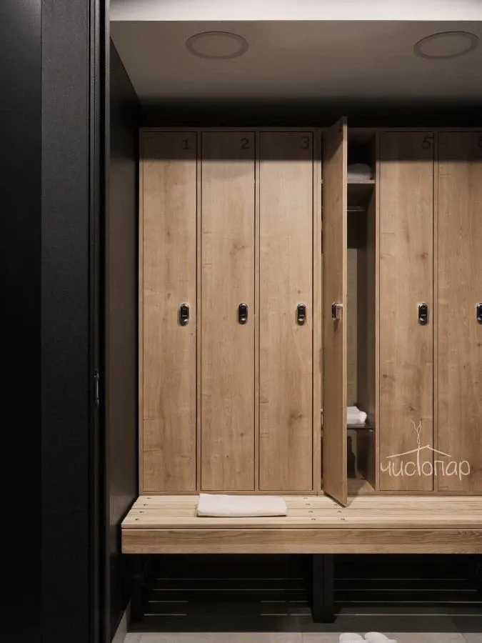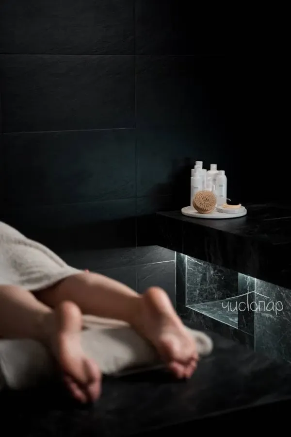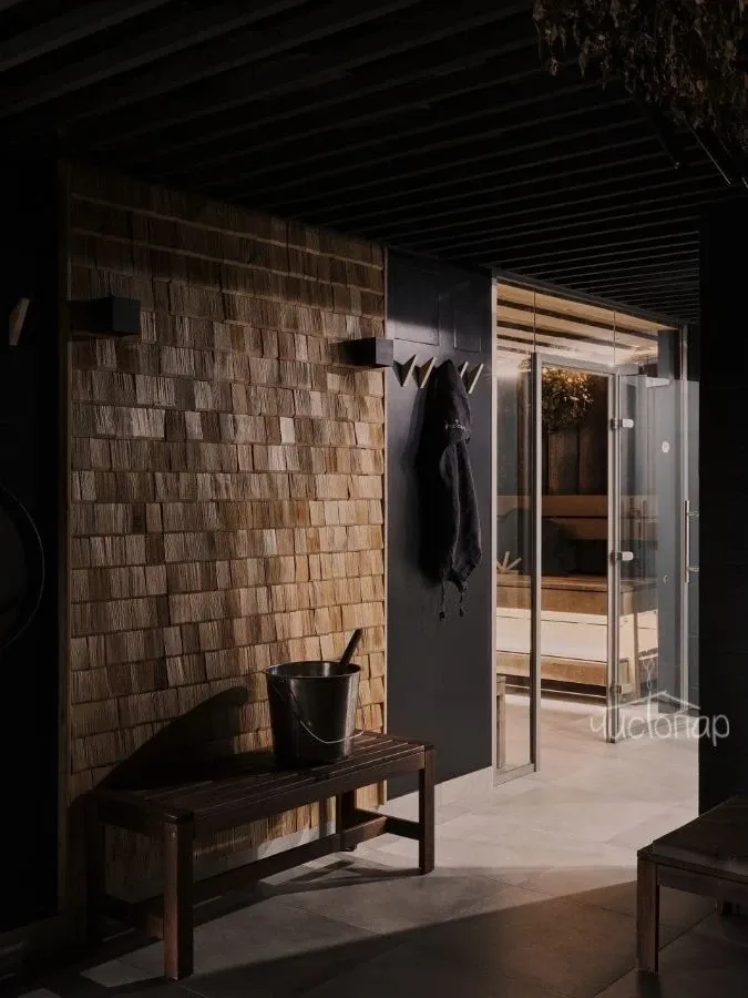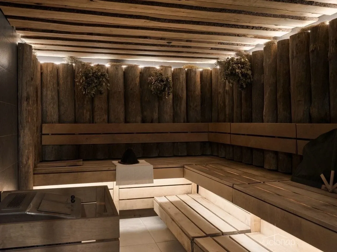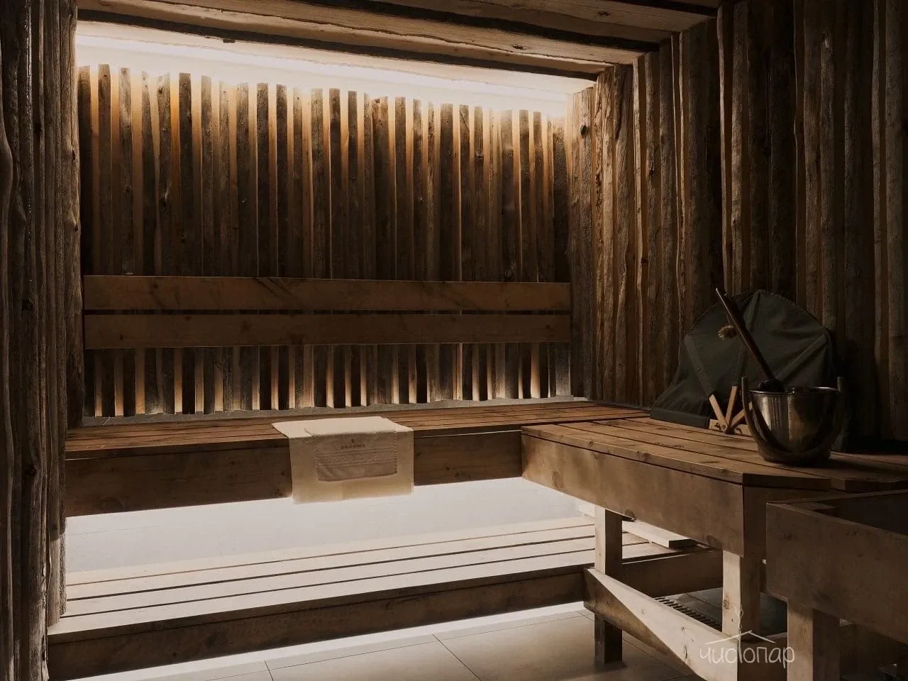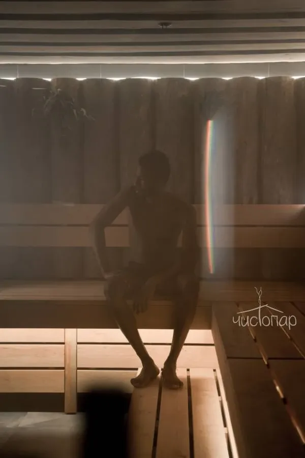 Русская баня с отделкой из карельской сухостойной сосны Кело, которая отлично держит пар и погружает в исконно русскую атмосферу. Лежаки специализированы для парения и имеют удобные параметры для размещения. Баня оборудована современными инженерными решениями: система вентиляции обеспечивает комфортное длительное парение. Подача свежего воздуха под голову парящегося, повышает комфорт и дает возможность дольше наслаждаться парением.