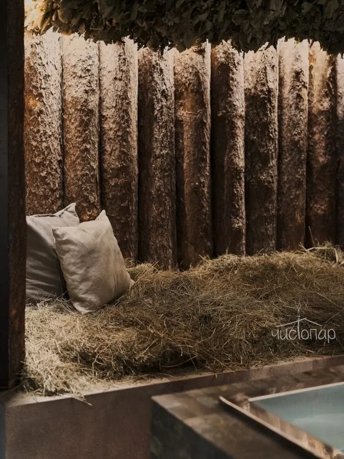 Для отдыха после парения доступен подогреваемый сеновал в сосновом бору. Разместившись в нем вы почувствуете чарующий запах сена и услышите пение птиц.