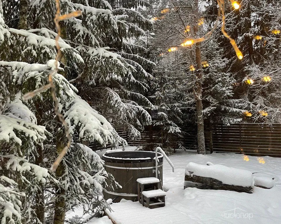 В еловом лесу Ленобласти для гостей предоставляются домики с финскими названиями MÖKKI и MÄNTY. Рядом с каждым домиком есть горячая купель, на территории расположены мангальная зона, баня на дровах с тремя секциями: парной, помывочной и комнатой отдыха. Баня построена в форме огромной деревянной бочки, в парной открывается вид на высокие ели.