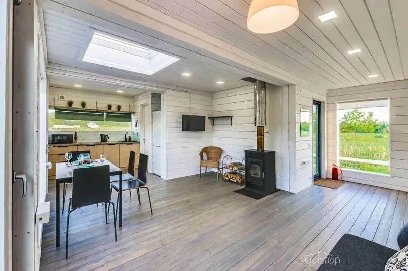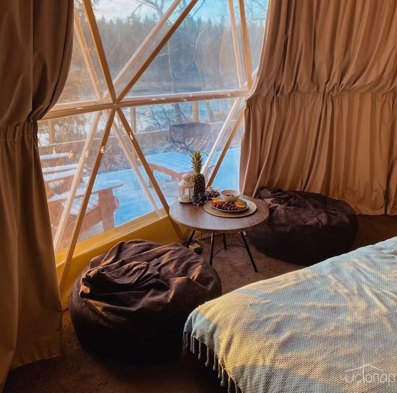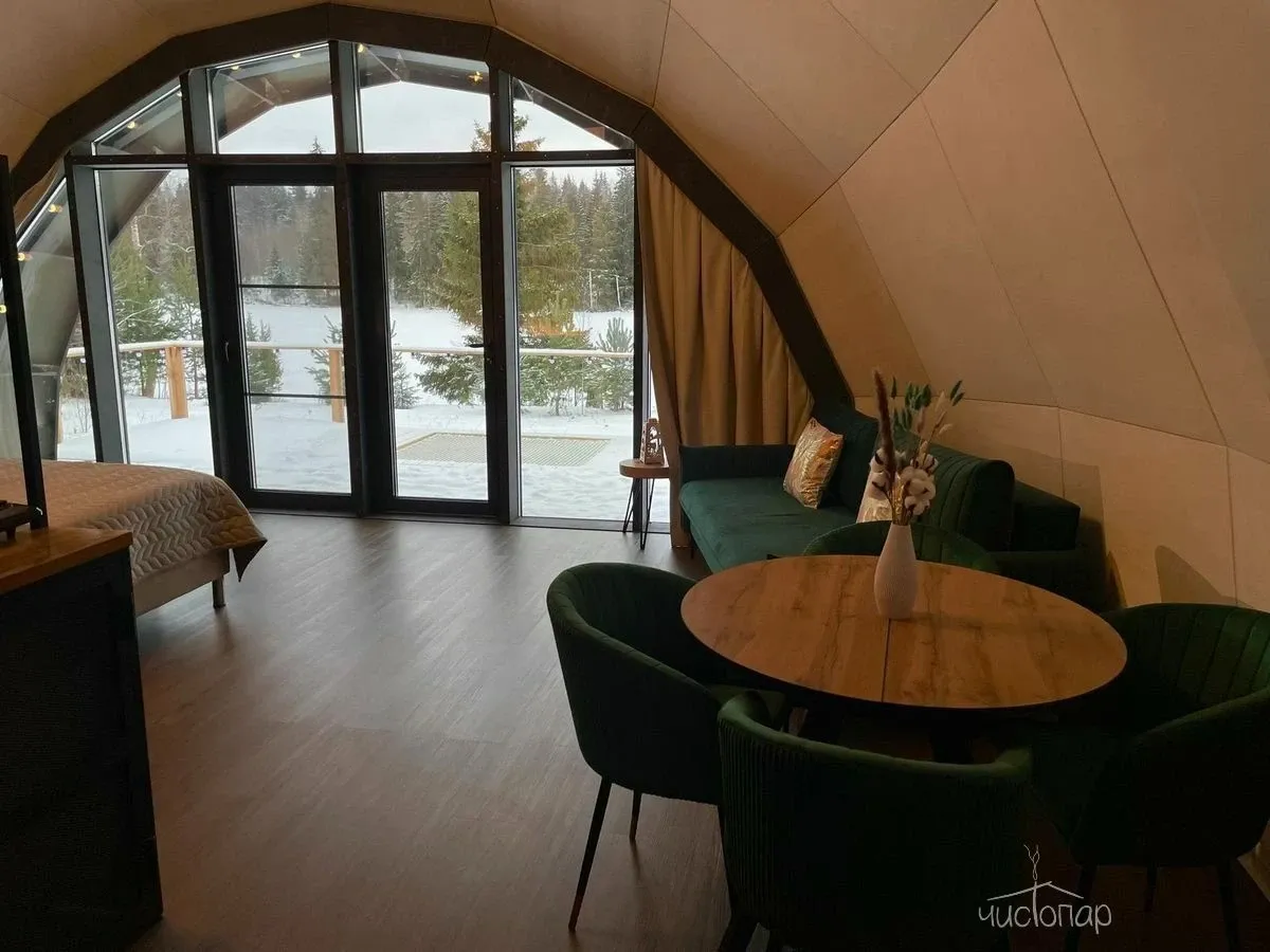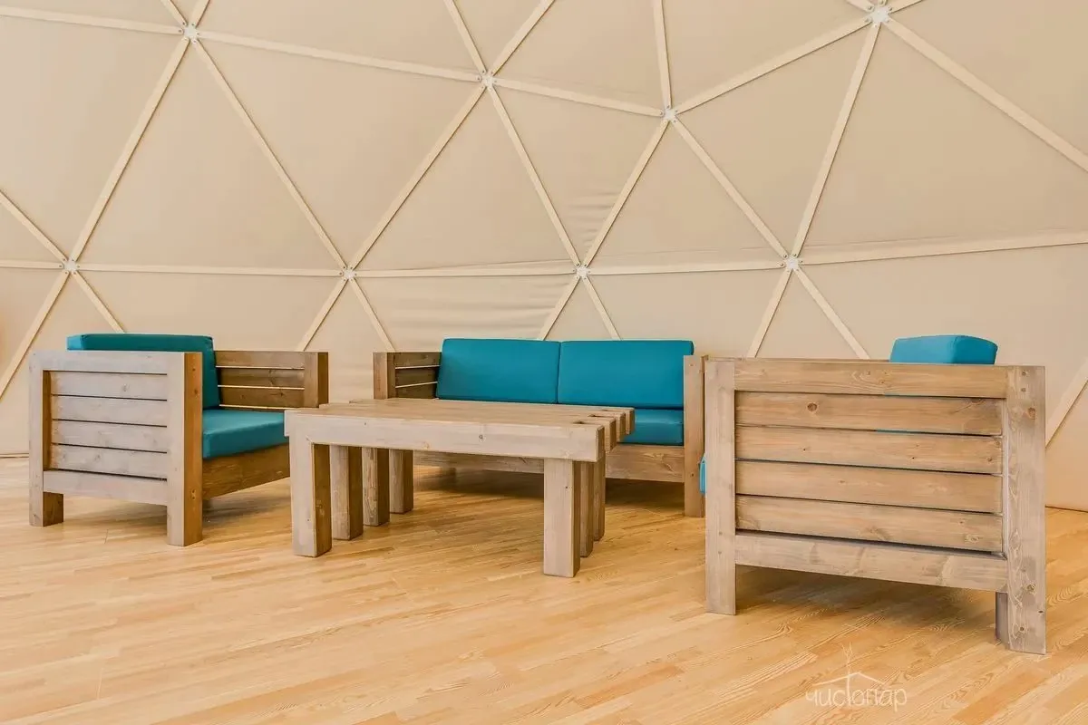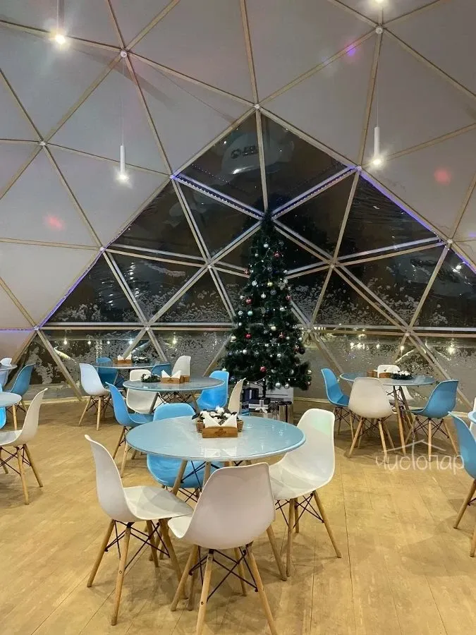 • Комфортное проживание: 3 комфортабельных лоджа с купелью, 5 сфер с панорамными окнами с видом на озеро, 13 стационарных комфортных шатров со всеми удобствами, 2 мини-дома с панорамными окнами с видом на еловый лес, дом в скандинавском стиле, дом в русском стиле из бруса.