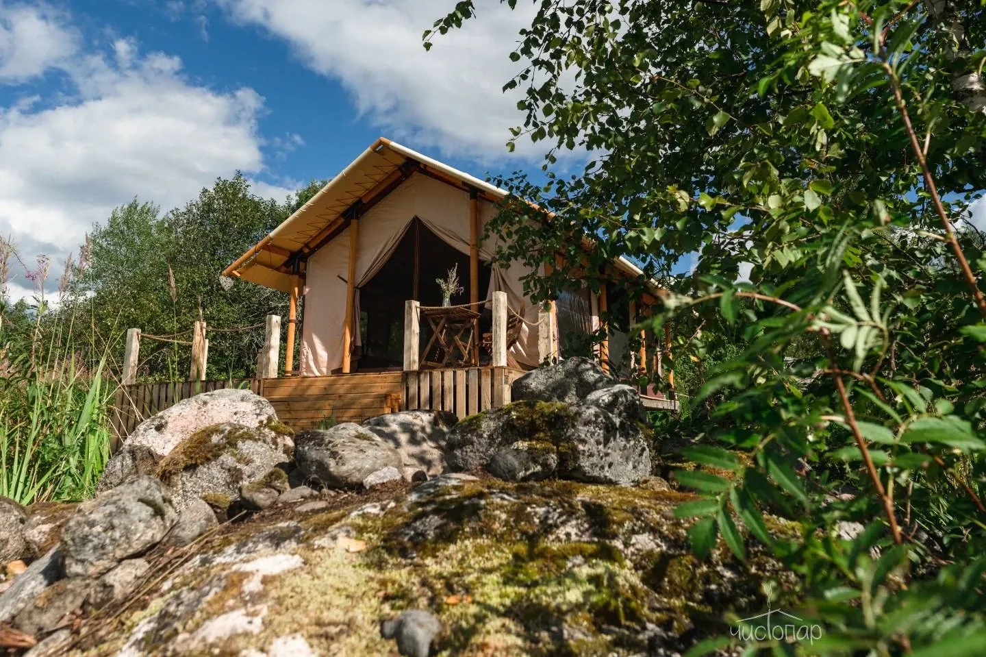Сафари ШатрыУютные летние шатры в балийском стиле. С видом на озеро, речку и березовую рощу.