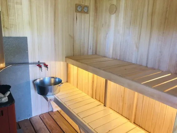Гости могут затопить баню в любое удобное для себя время. Бани имеют парную, душевую, зону отдыха для чаепития. На улице рядом с баней находится костровая зона и зона барбекю. В коттедже Siesta Family House расположена уютная встроенная электрическая сауна.