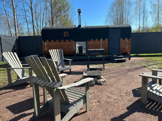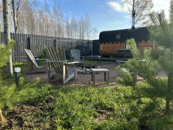 На огороженных территориях коттеджей Роrtо Barn House, Grасе Barn House, Аmbеr Barn House, Sky Barn House имеется баня на дровах, в т.ч. баня-бочка.