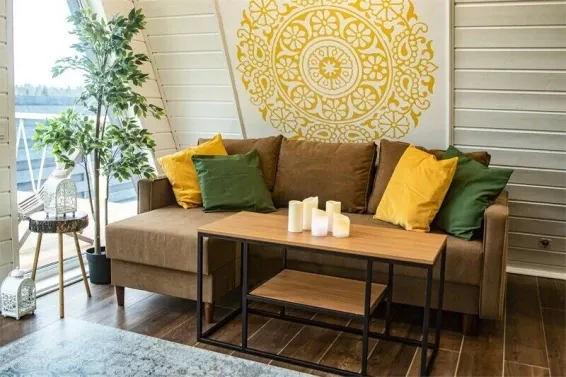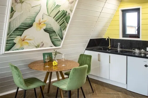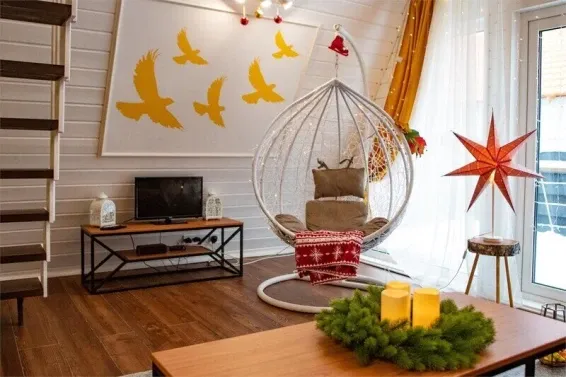 Дома выполнены в особенном стиле — 4 сезона года в интерьере: осень, зима, весна, лето. Для отдыха имеются беседки / мангальные зоны.