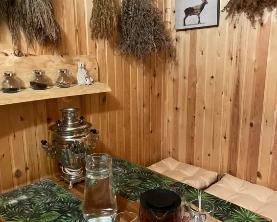 Здесь можно забыть о стрессе, снять напряжение и расслабиться душой и телом в русской бане на дровах и в теплом чане.