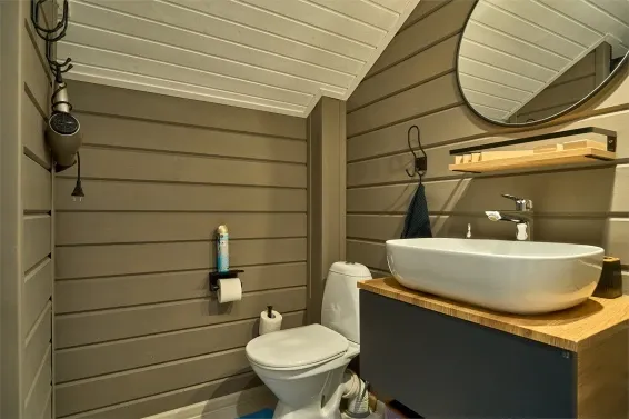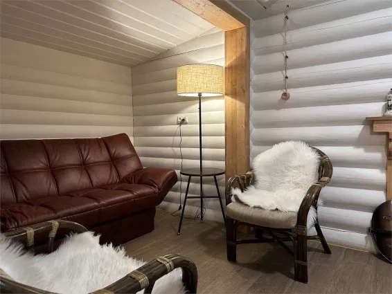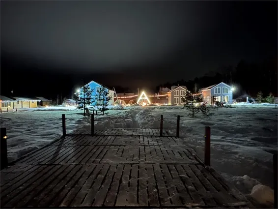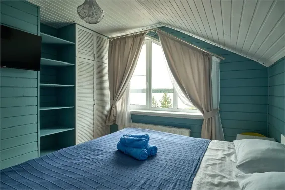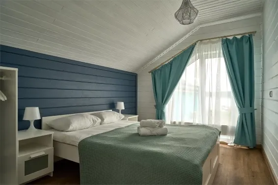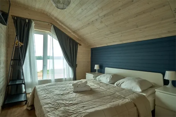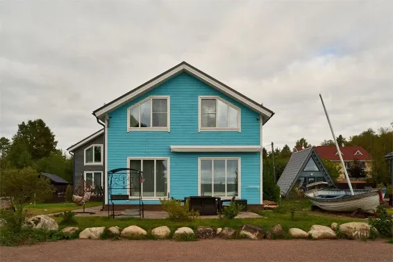 Двухэтажный коттедж с 3-мя спальнями, оборудованной кухней с гостиной зоной и сауной. Бесплатные услуги для проживающих: принадлежности для барбекю, сапы, пирс, пляж, лежаки, иглу и очаг. Для проживающих более 10 дней предоставляется прогулка на электрическом катамаране и баня на дровах. Разрешается проживание с домашними питомцами.