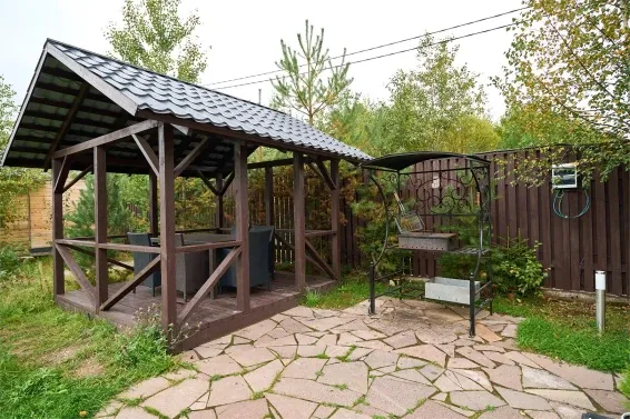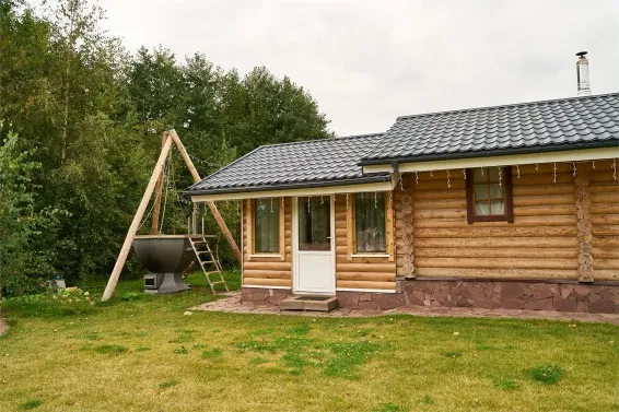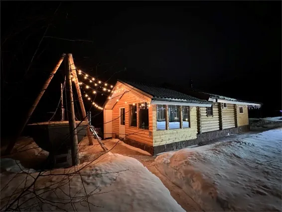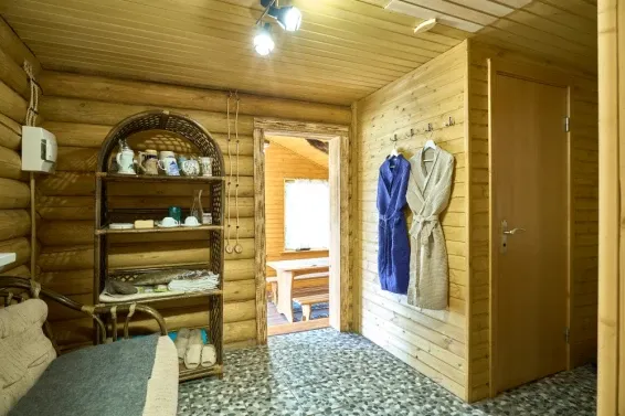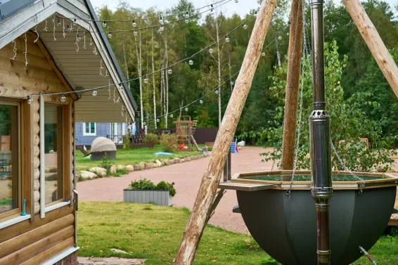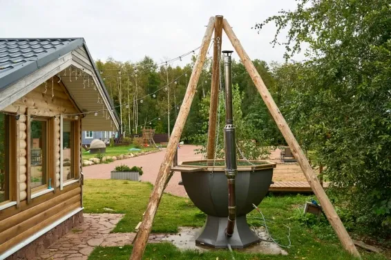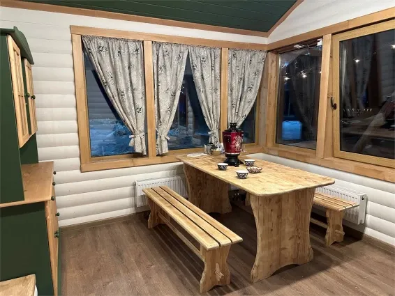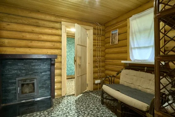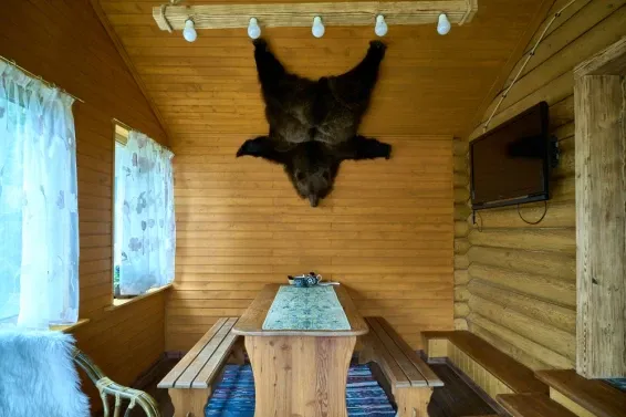 Здесь гостям предлагают традиционную русскую баню с открытой купелью. Уютная терраса, мангальная зона, зона для застолья с ТВ.