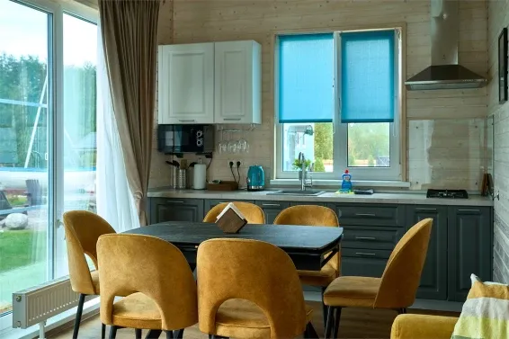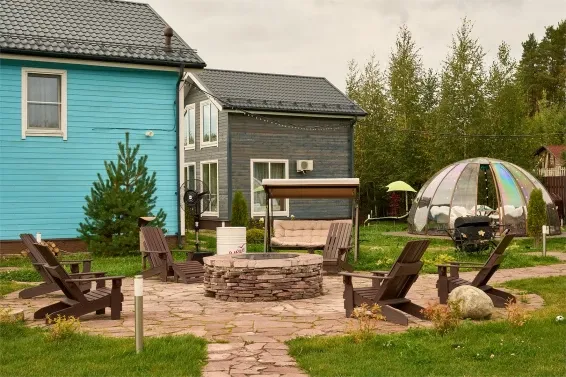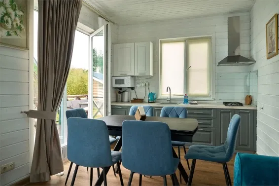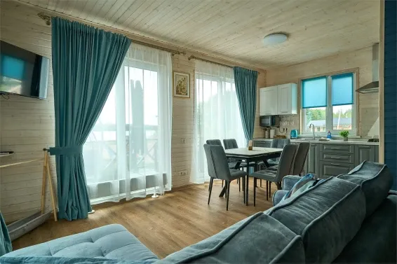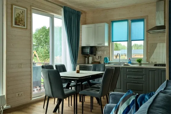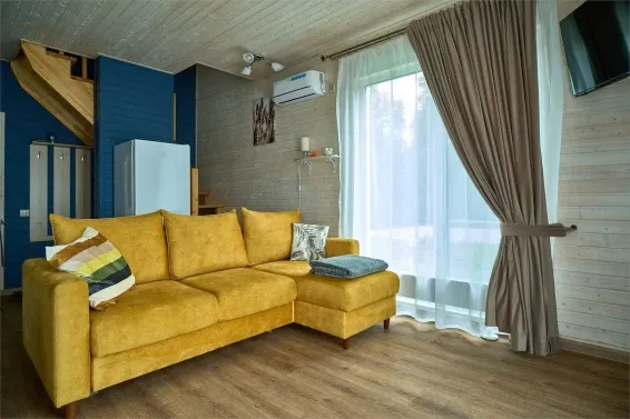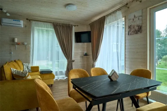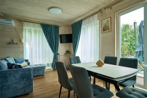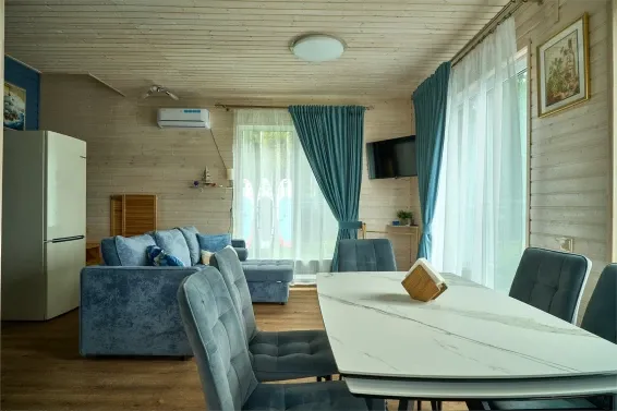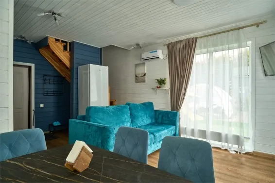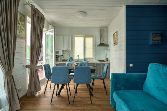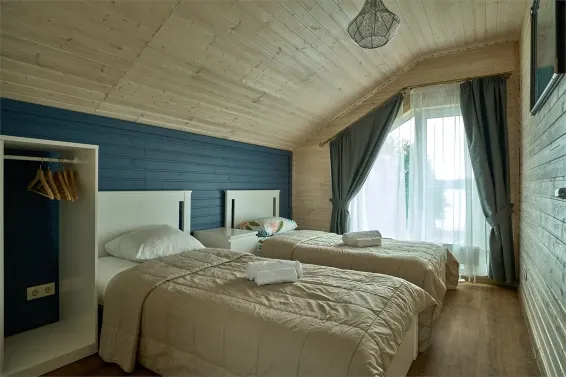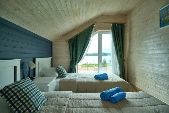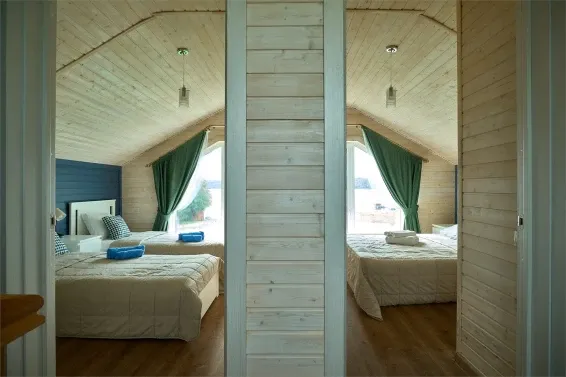 Для проживания предлагаются два двухэтажных домика, каждый из которых может принять до шести гостей, а также просторный коттедж, вмещающий от шести до девяти человек.