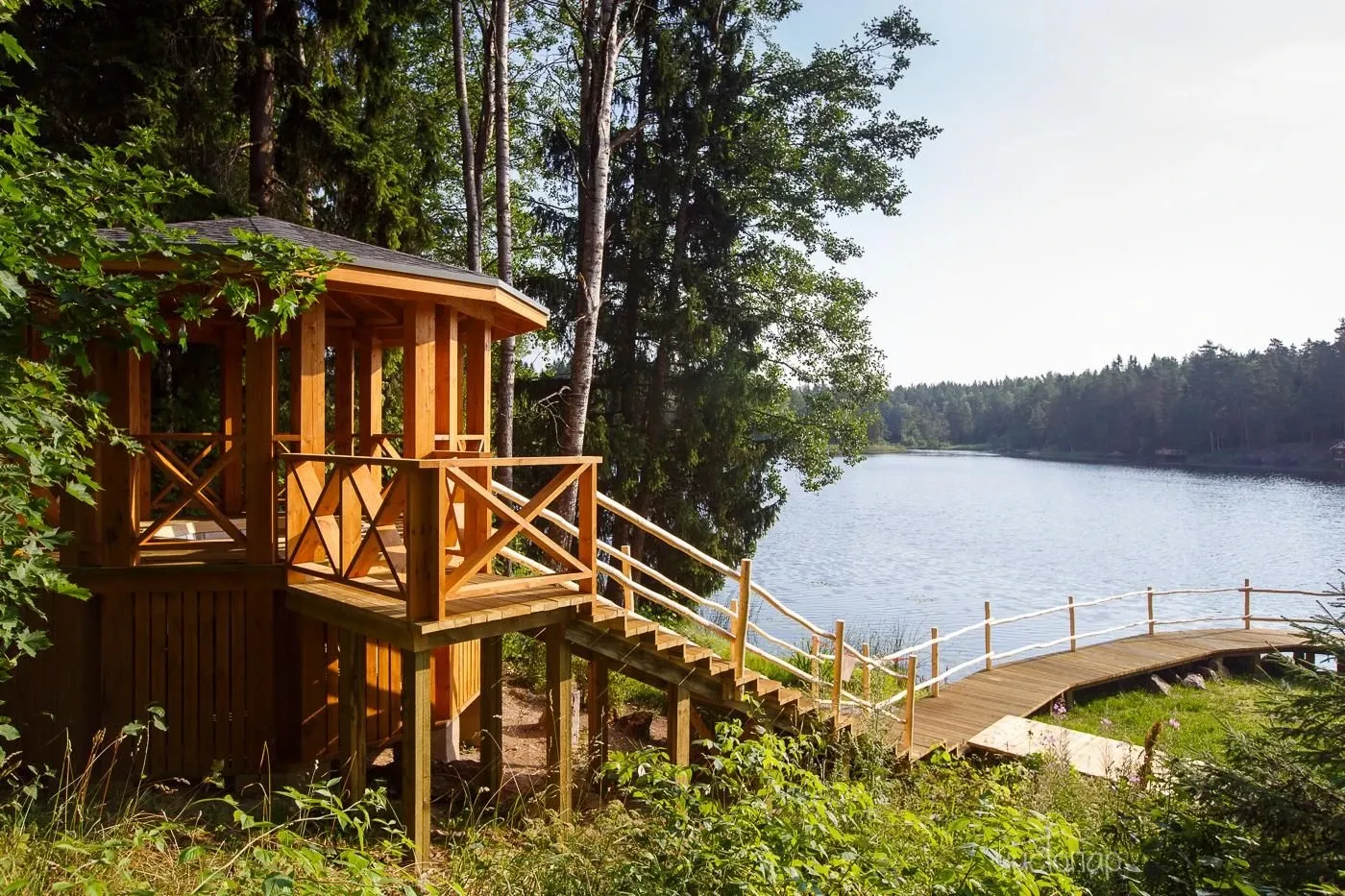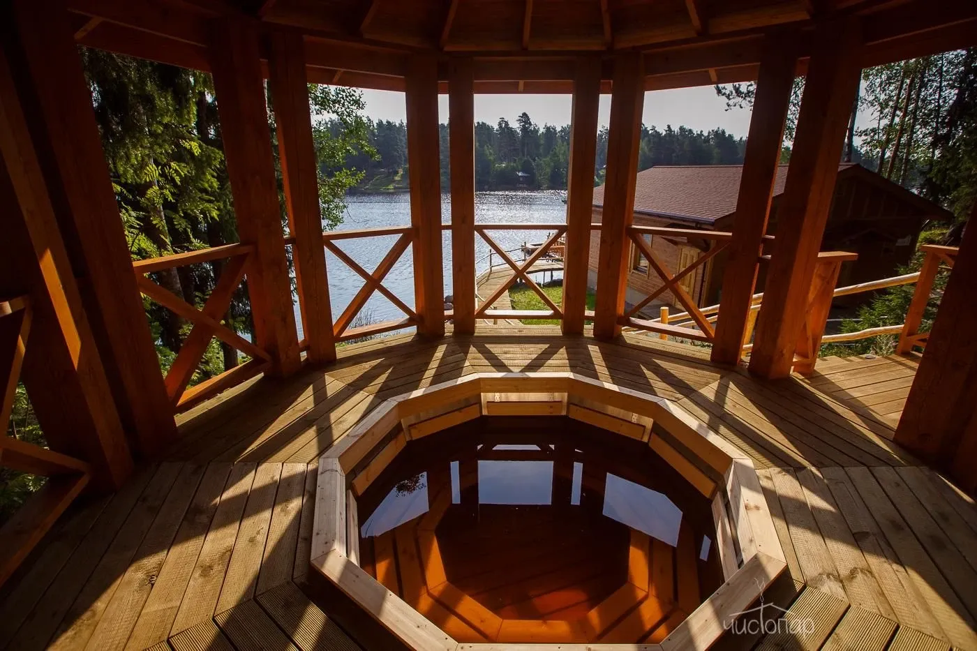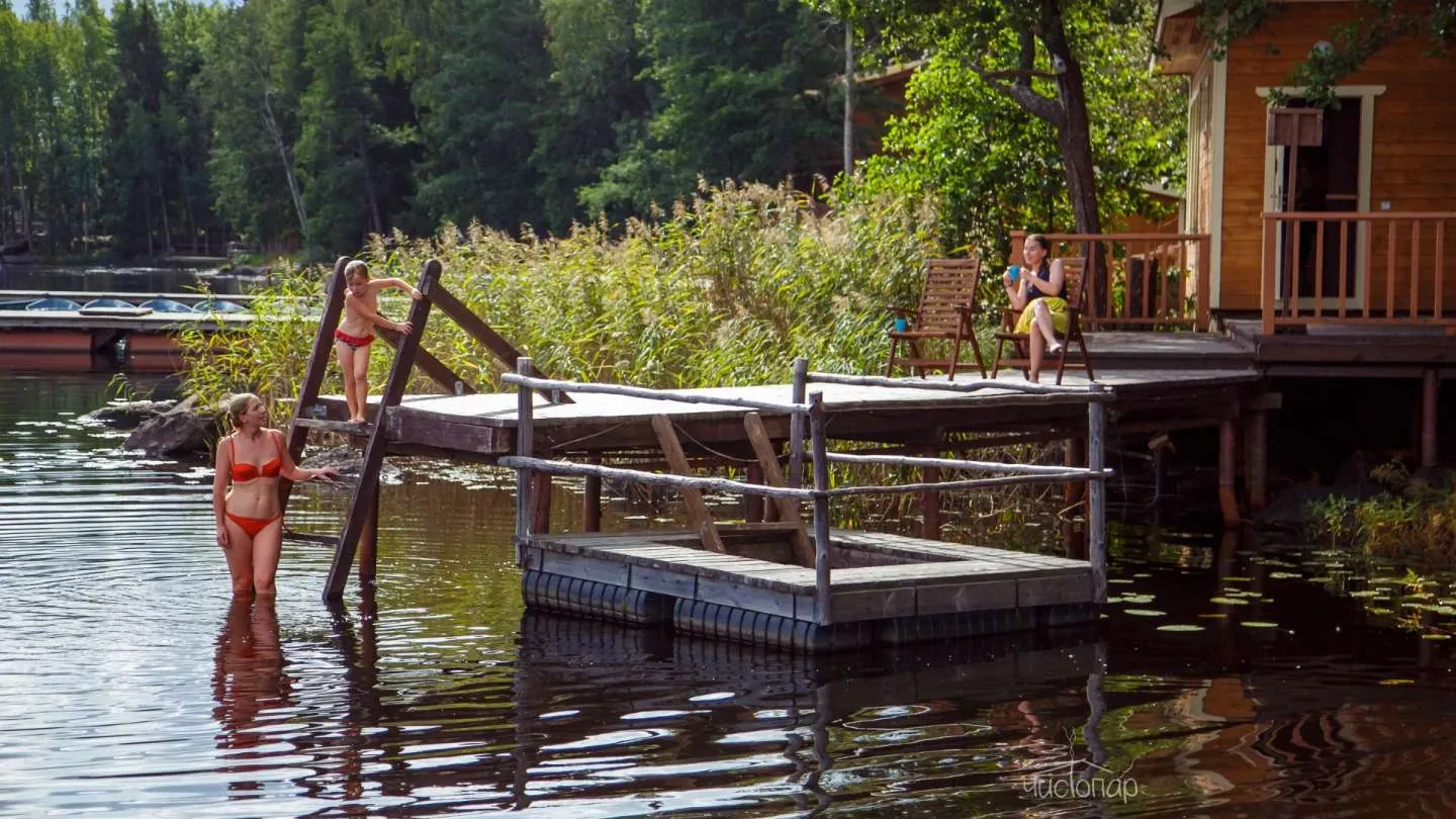 Все бани расположены прямо на берегу, поэтому в любое время года можно окунуться в озеро прямо после парилки. Особенно приятно искупаться в проруби зимой.