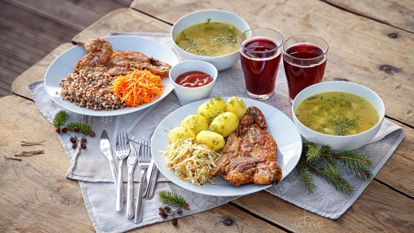 На территории базы отдыха питание осуществляется самостоятельно. Оборудованы мангальные зоны. Есть возможность приобрести свежие фермерские продукты.