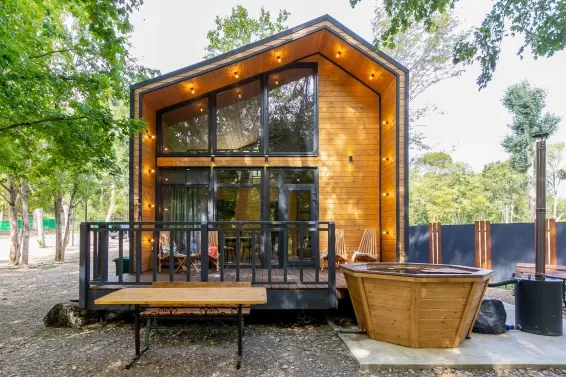 Проживание на любой вкус: от уютной студии на двоих до домов премиум-класса «Калина». Уникальный проект - «Вереск», коттедж на 38 гостей, с огромной гостиной и 19-ю спальнями.