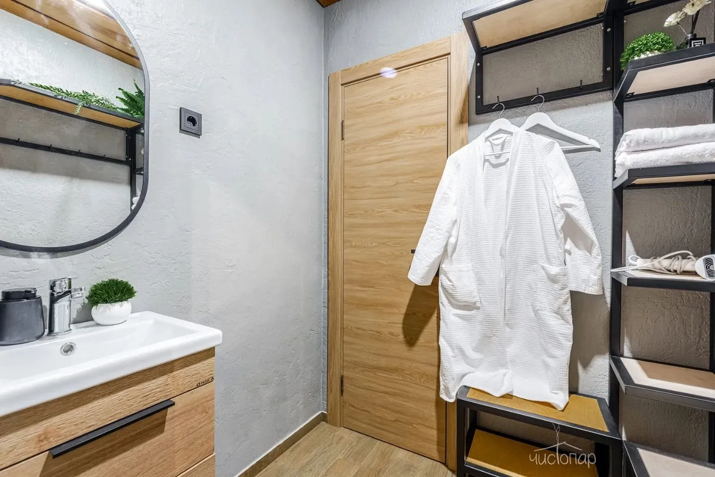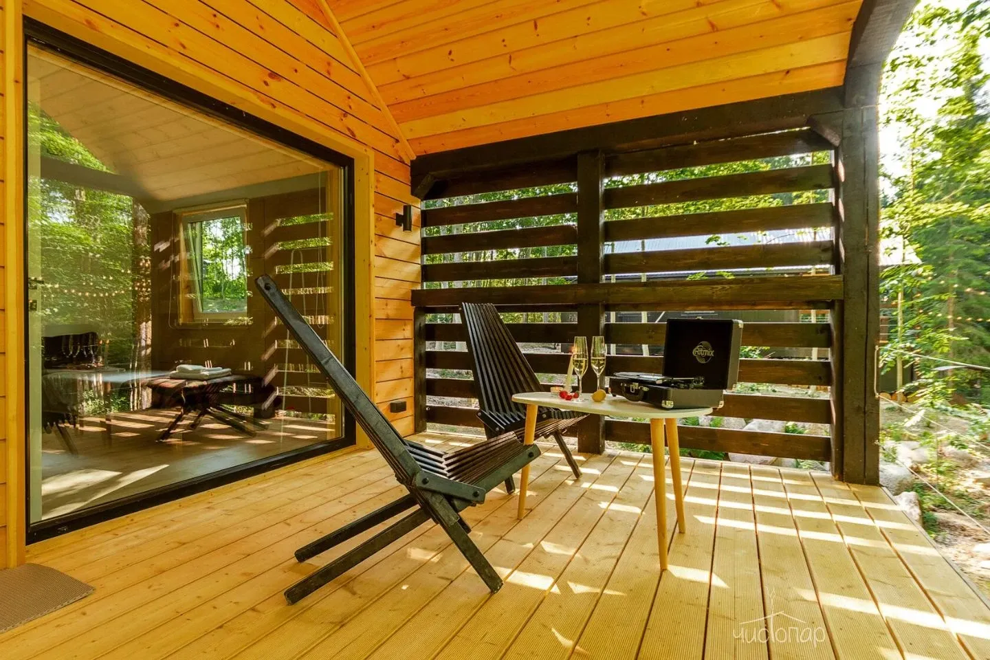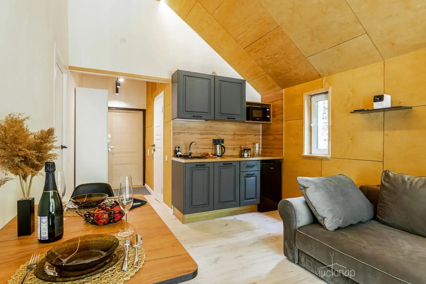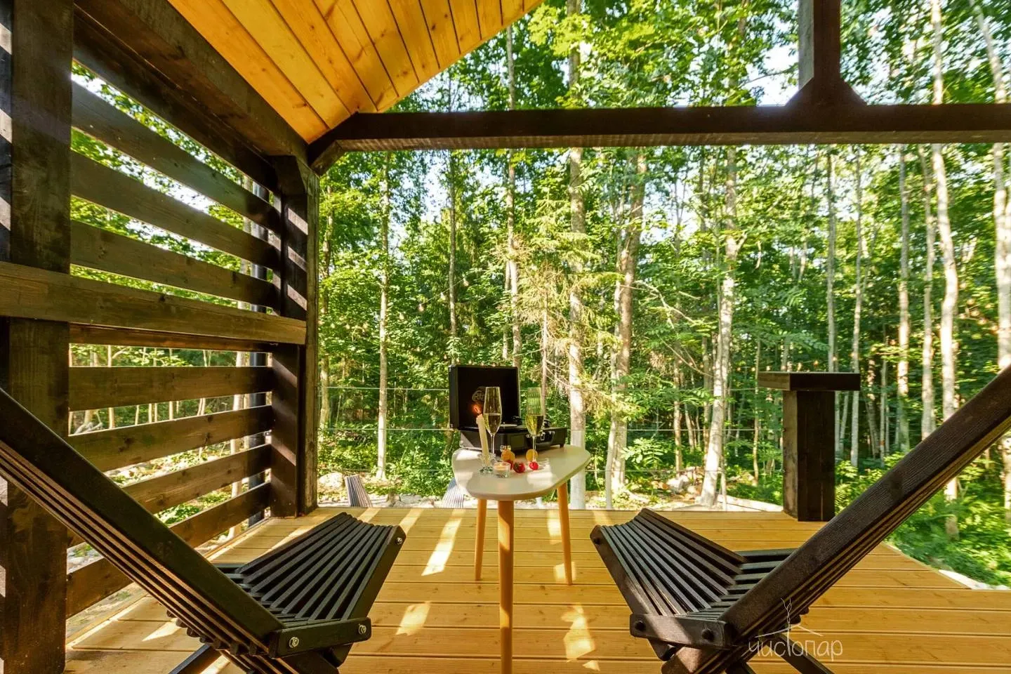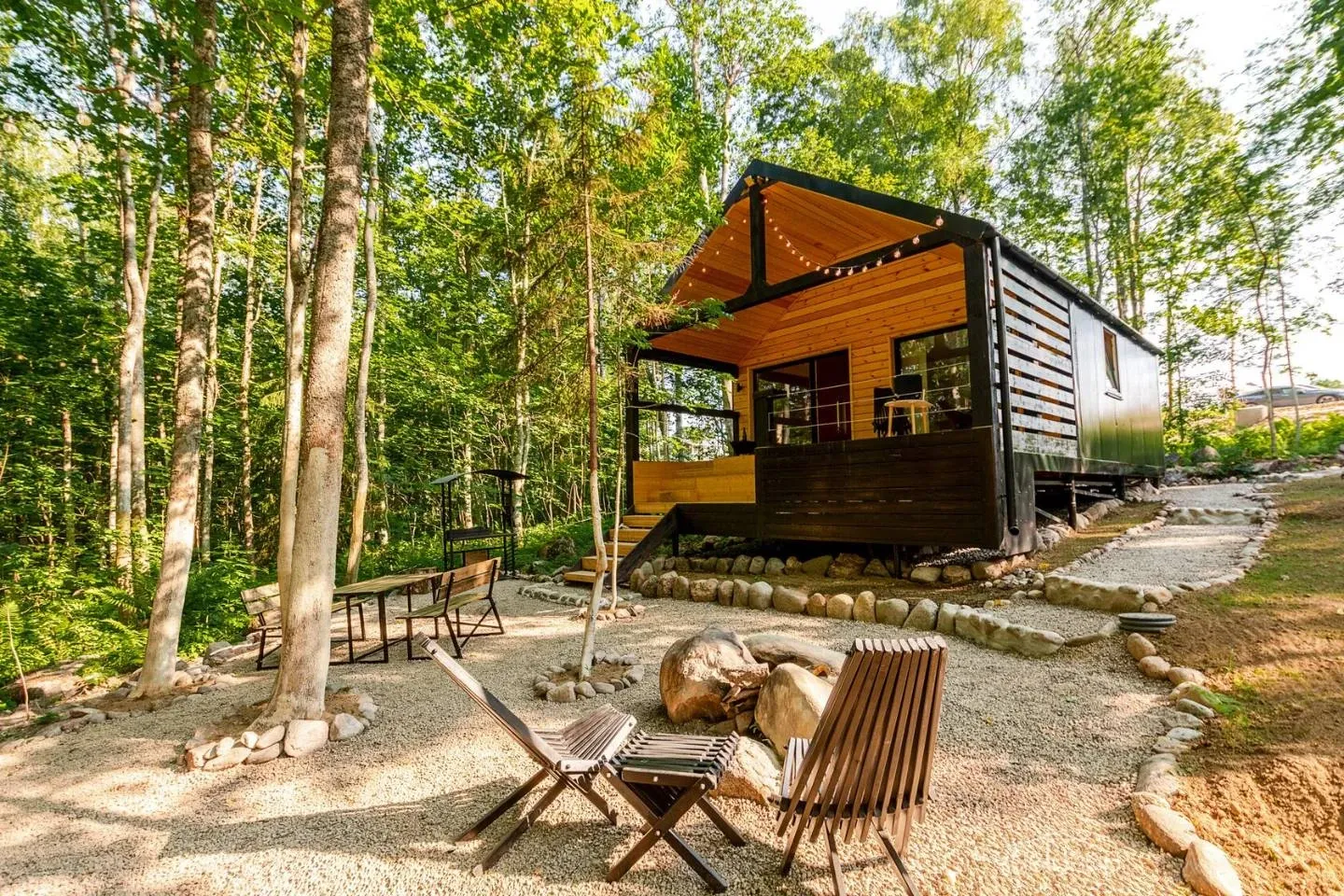 Каждый дом располагает крытой террасой с прекрасным видом на лес, оборудованной зоной для времяпровождения у костра и мангальной площадкой, где можно приготовить шашлык и другие любимые блюда. Внутри гостей ждут светлые комнаты с огромным окнами, современной мебелью и техникой. В оформлении интерьера преобладает древесина.