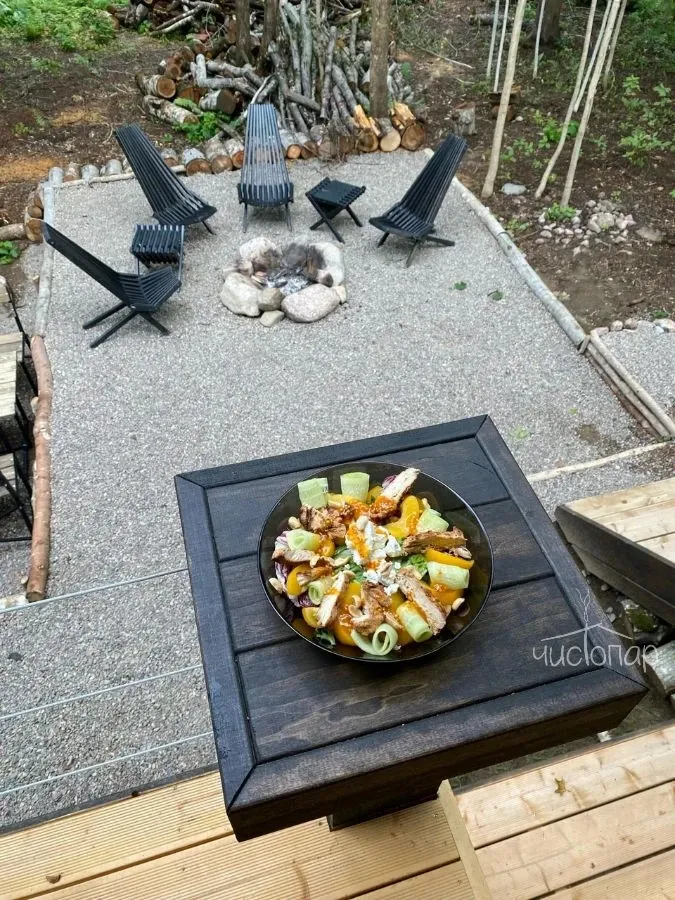 Одноэтажный дом 52 м2 | 1 спальня + большая гостиная | до 4 человек. Дом расположен в окружении высоких деревьев. Из панорамных окон открывается прекрасный вид на дикий лес. Крытая терраса 18 м2. У дома располагается костровая зона с кострищем и креслами, мангал с навесом. Внутренняя отделка дома выполнена из экологически чистых материалов - дерево покрыто масло-воском. Во всем доме теплые полы. Дом оборудован бризером Xiaomi (приточной системой). Можно не проветривать, в доме всегда будет чистый и свежий воздух комфортной температуры. Система фильтрует даже аллергены.