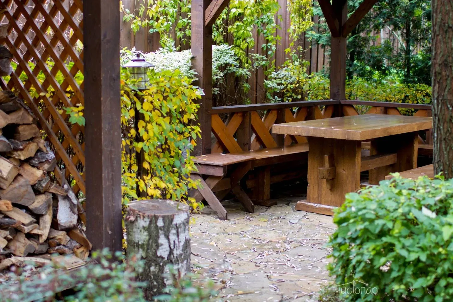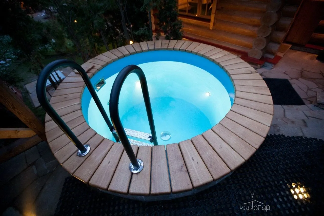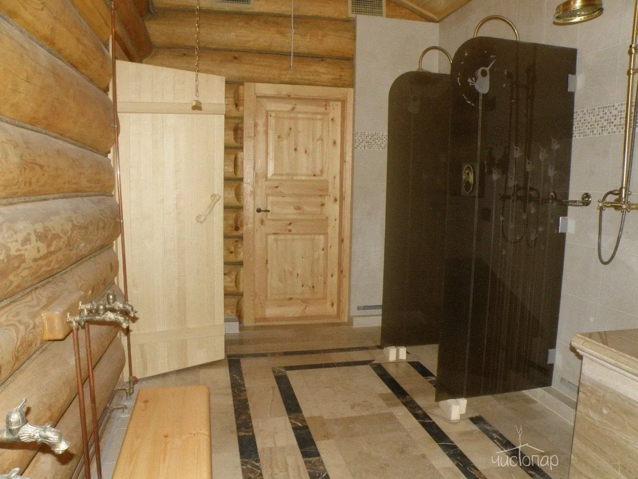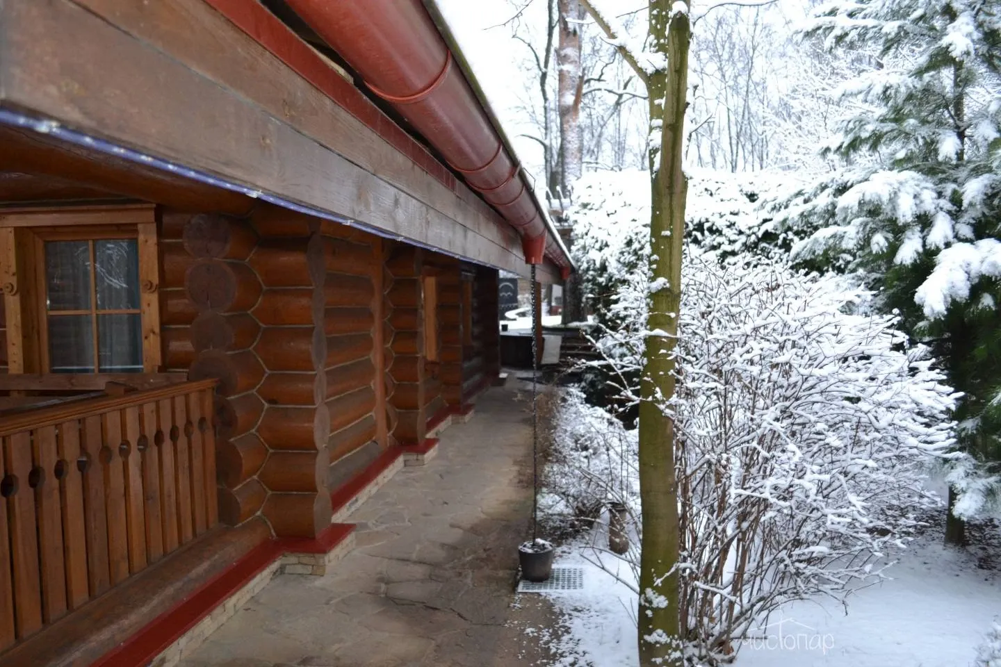 Для отдыха гостей предназначен бревенчатый коттедж, сливающийся с окружающей экосистемой. В нем имеются: сауна, оборудованная уникальной печью с особым мягким паром, незамерзающая купель с системой фильтрации, баня по-черному и душ Виши для получения более полной релаксации. Помывочное помещение оборудовано тремя душевыми кабинами, есть также обливочная кадушка и две раздевалки - для мужчин и женщин.