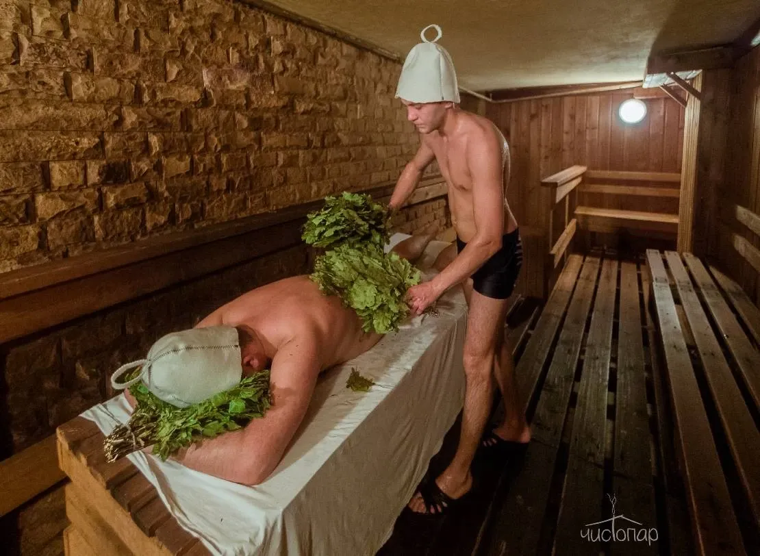Русская и турецкая парные, купели с холодной водой, обливочные ведра, услуги профессиональных парильщиков, доставка блюд и напитков из нашего кафе, спортивные соревнования на больших ТВ.