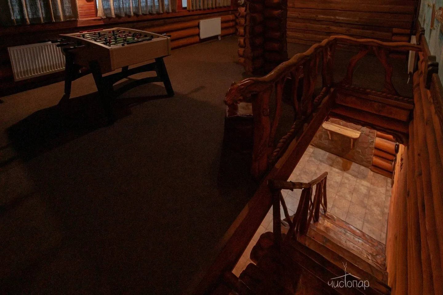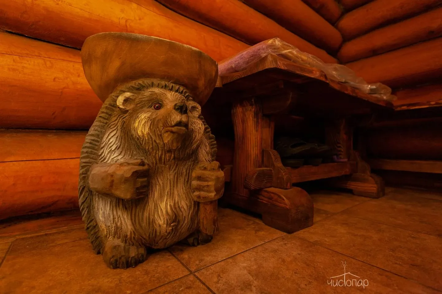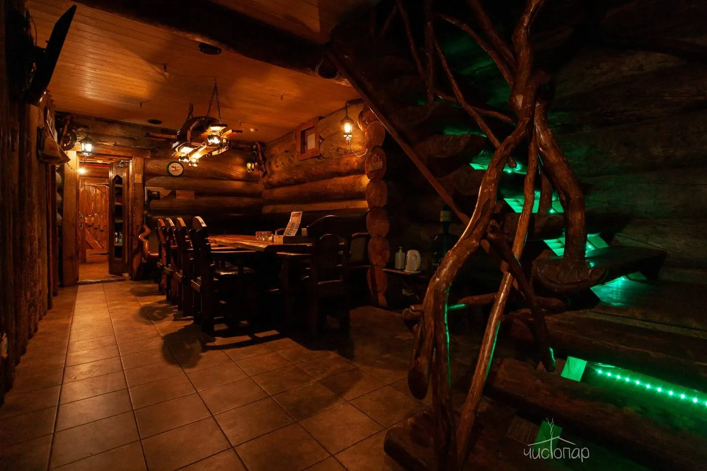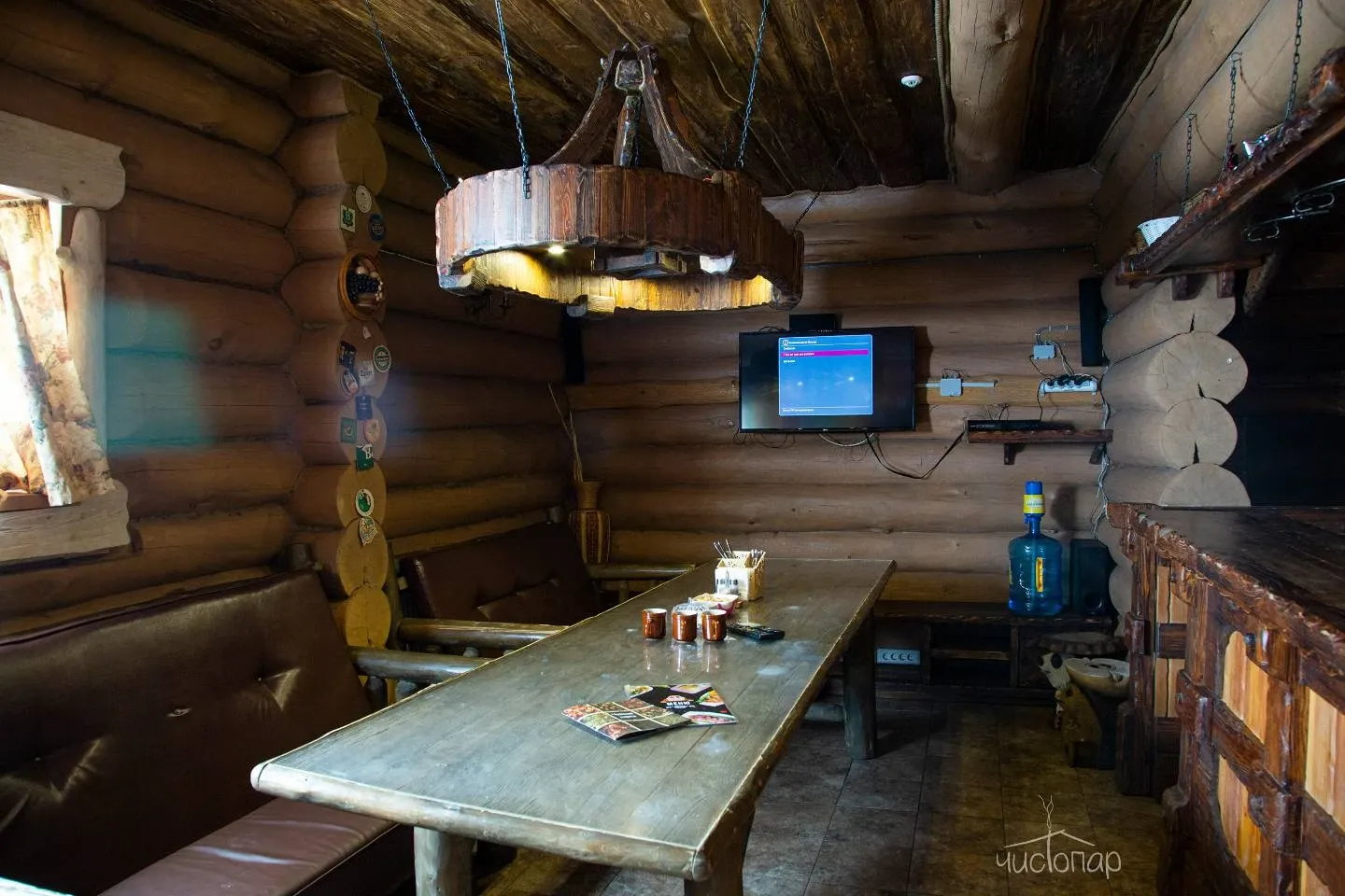 Все новое и как в сказке - все выполнено под древне-русскую старину. Дорогая деревянная мебель, массивные тяжелые двери, столы и стулья... Все выдержано в одном стиле.