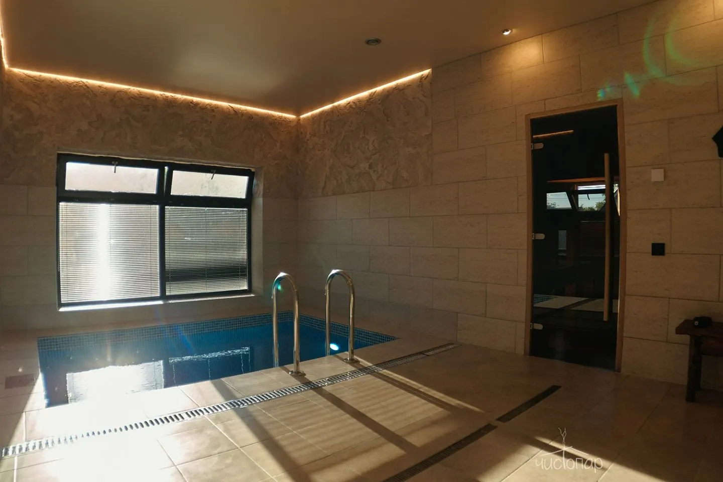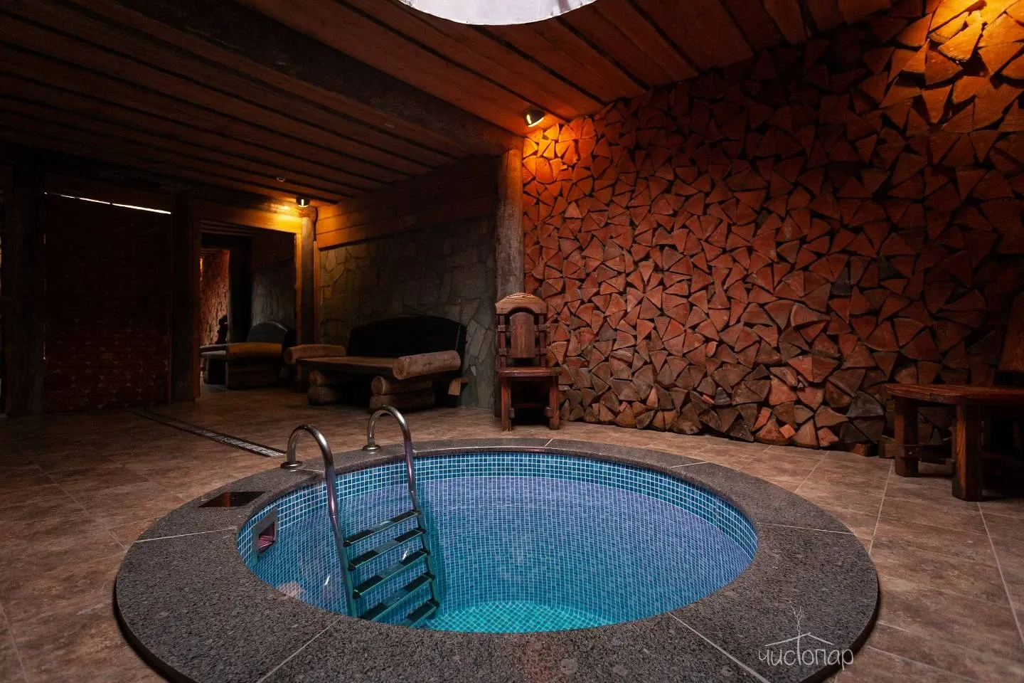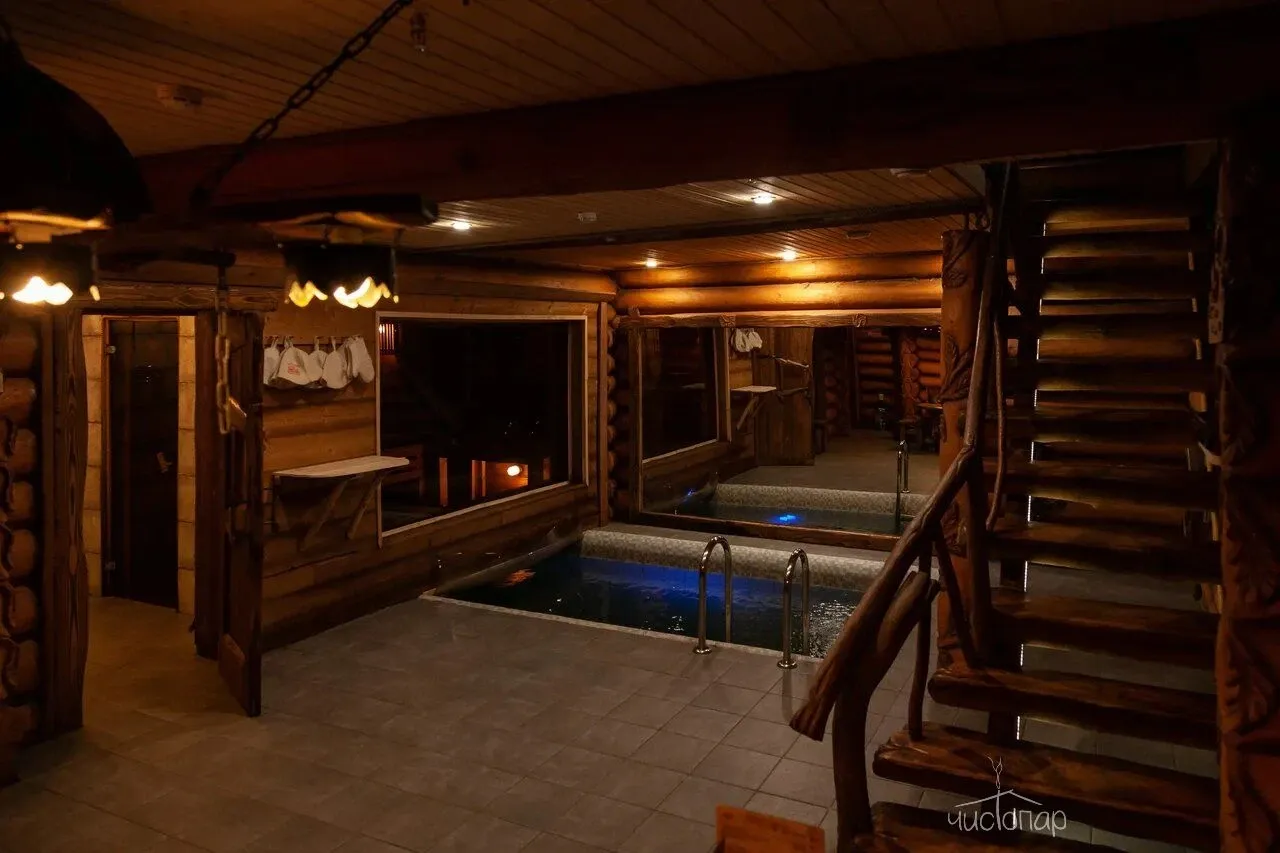 В комплексе нет бассейна, но есть большая кадушка с холодной водой.