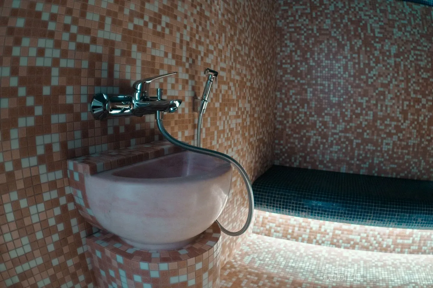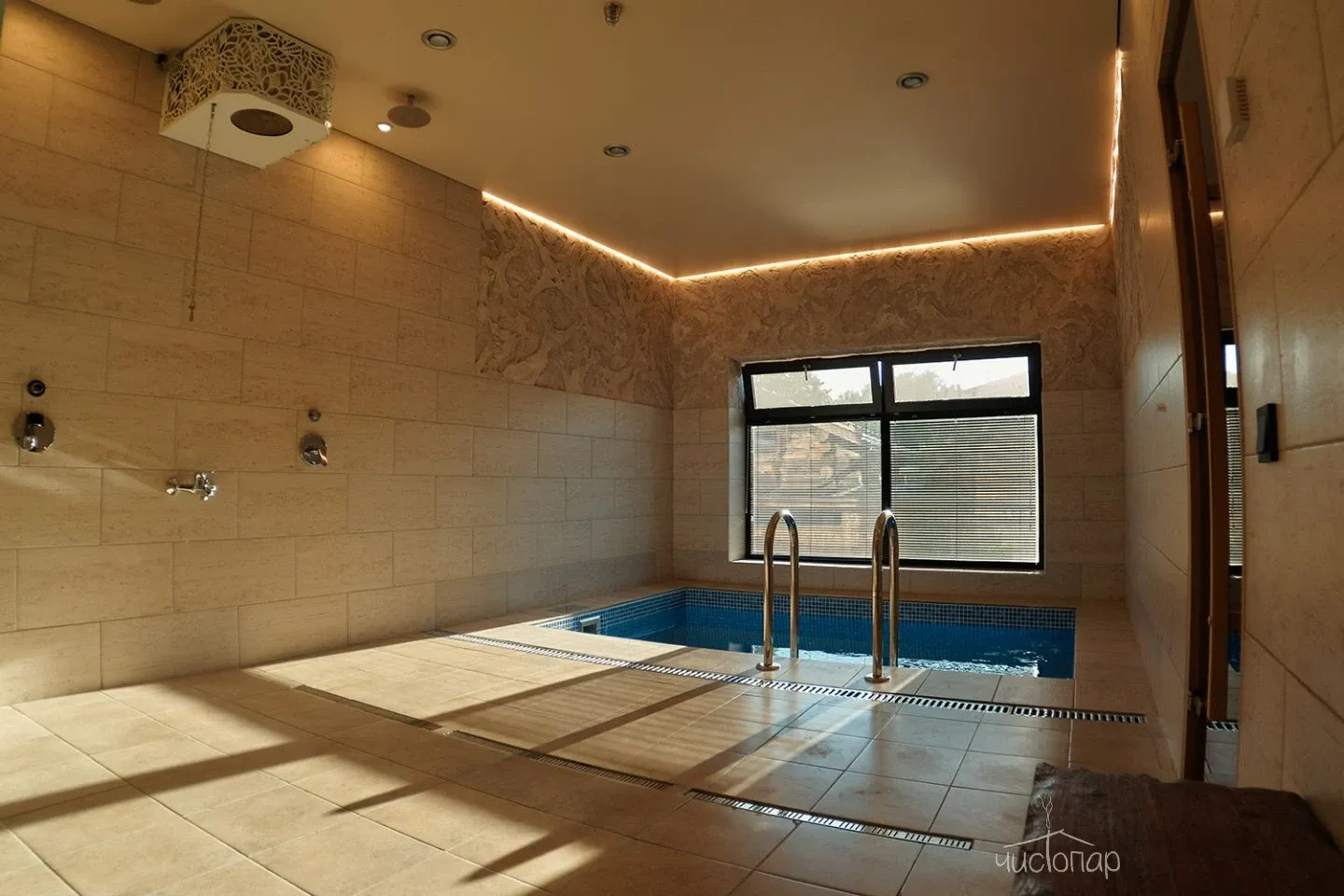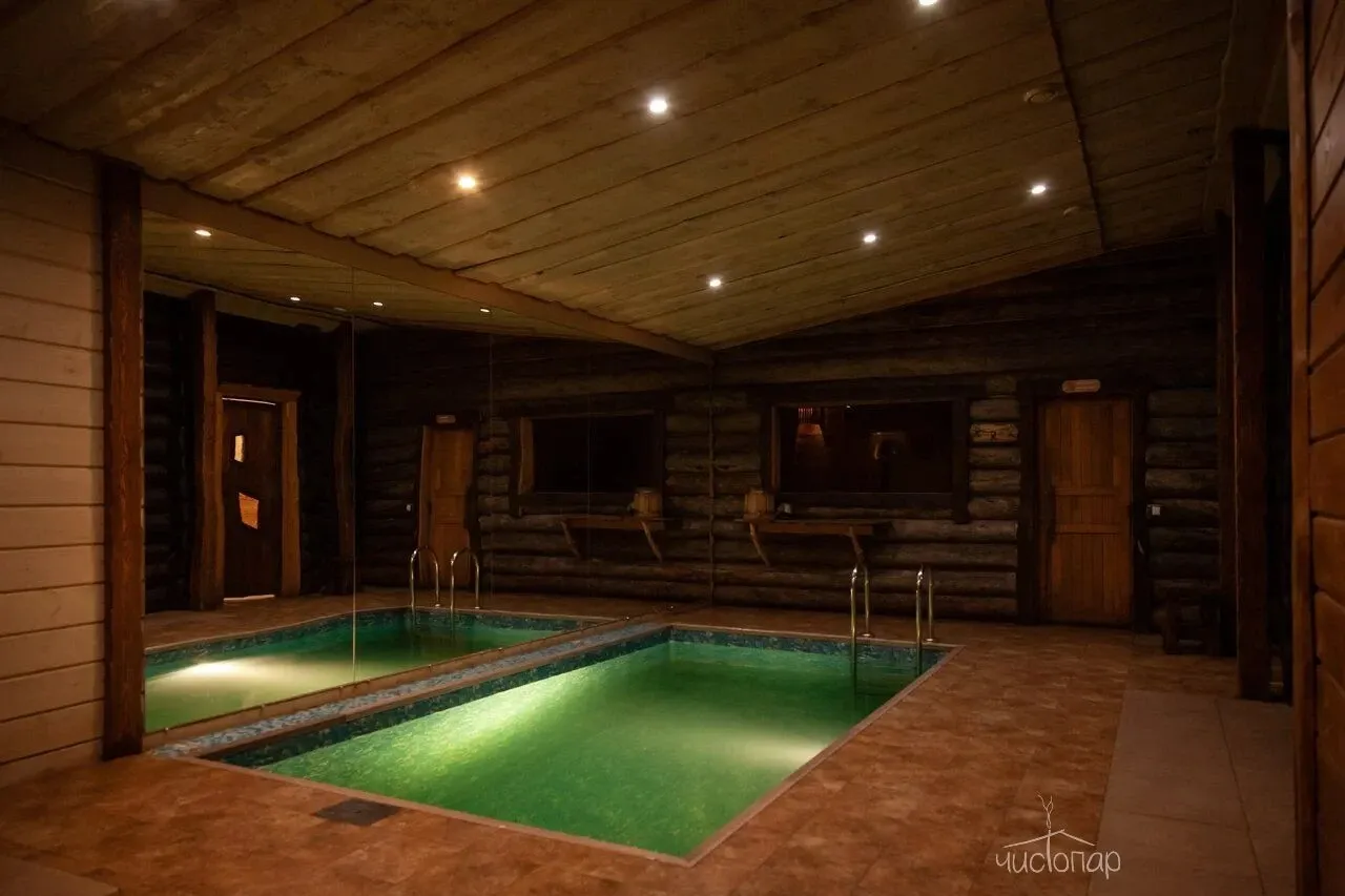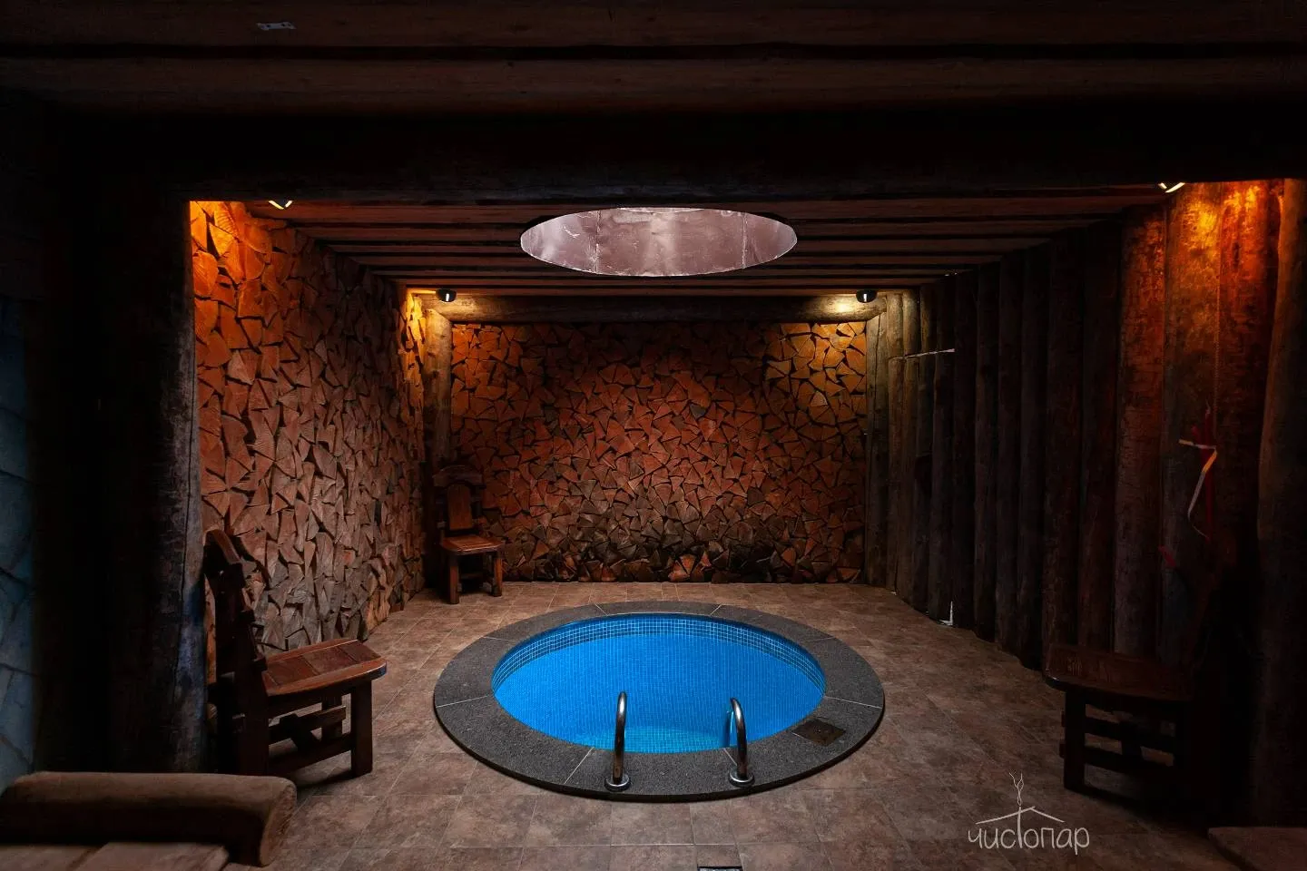 В комплексе нет бассейна, но есть большая кадушка с холодной водой.