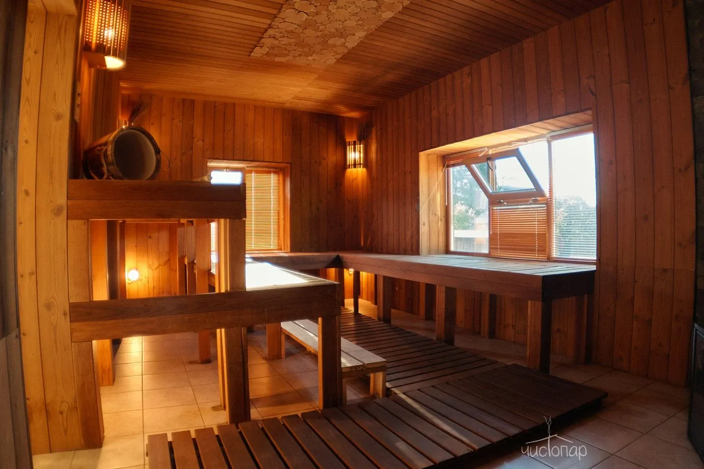 Гордость этого комплекса - парная на дровах. Мы уверены, что сможем удивить качеством пара даже самого заядлого парильщика!