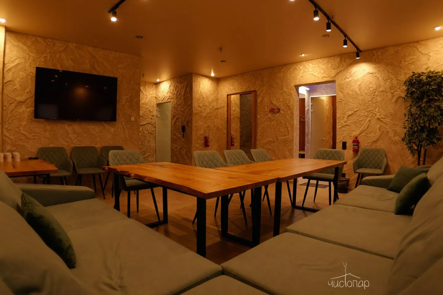 Если вас собирается компания побольше, то 6-8 человек более комфортно разместятся в бане Дружная. А если у вас уж очень большая компания, то посетите наш самый крупный комплекс Уютный!