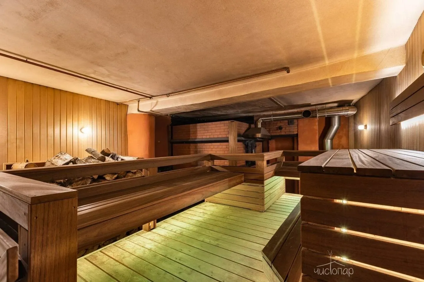 Приятный романтичный дизайн, большая парилка на 6 человек, кухня-гостиная, выход к просторной купели прямо из парной. Отличный вариант для небольшой семьи или компании.Читать далее