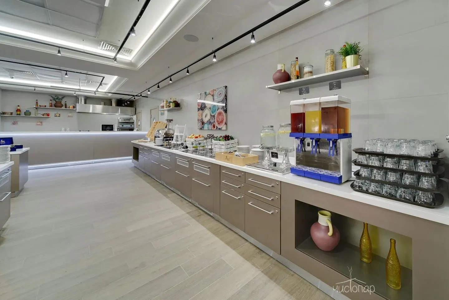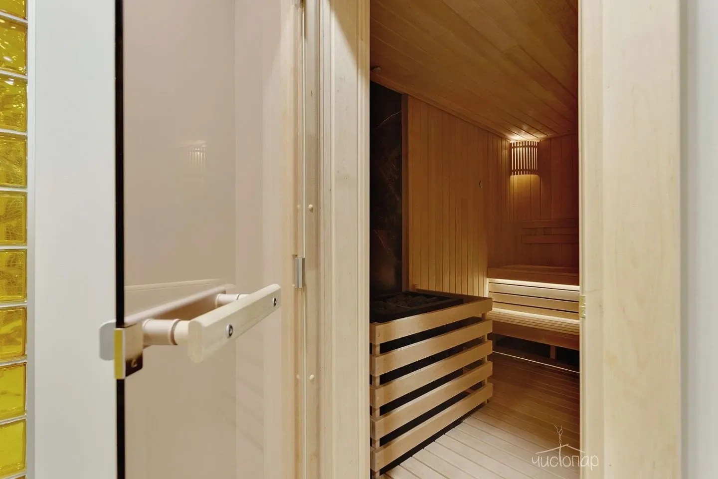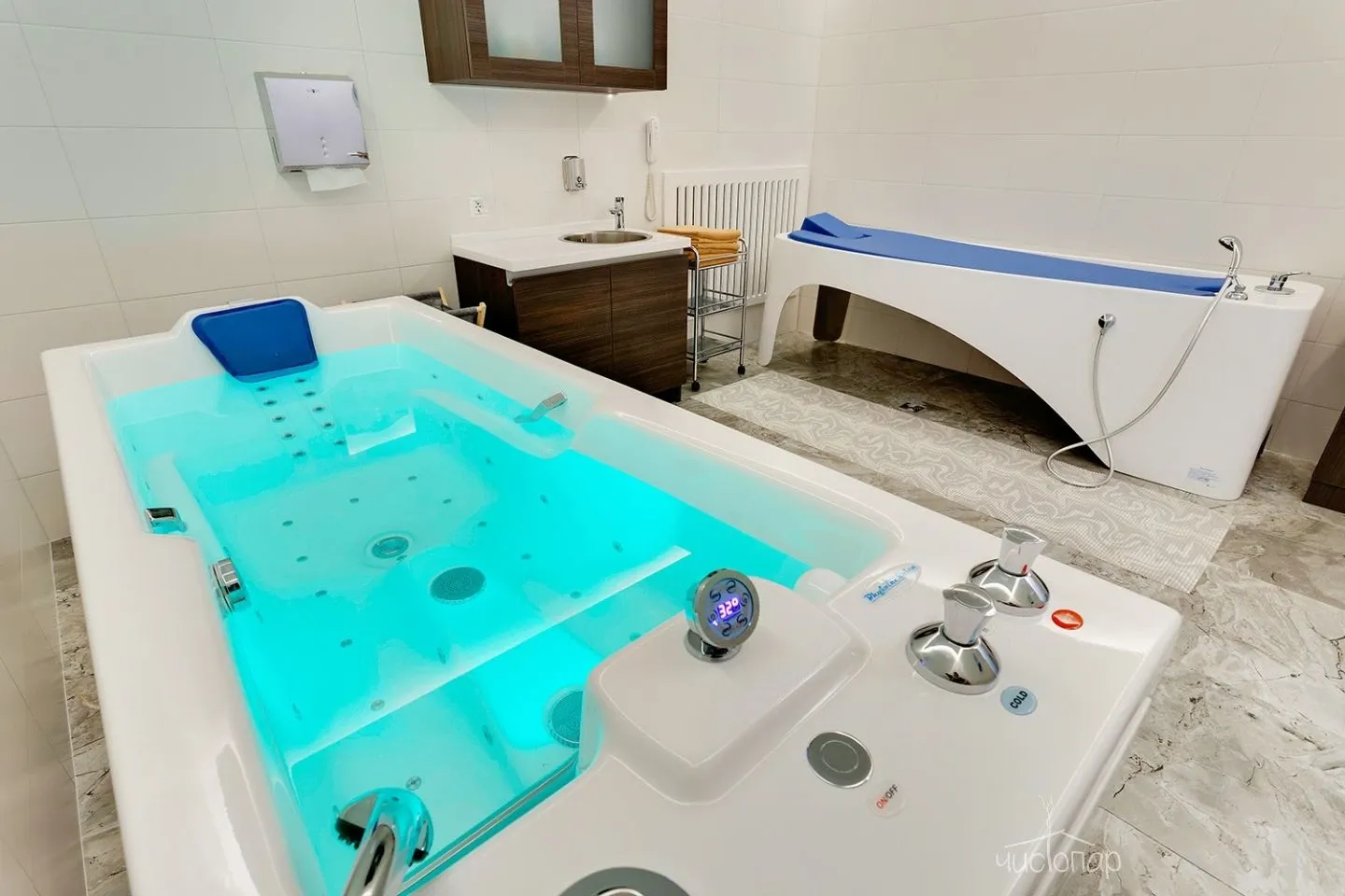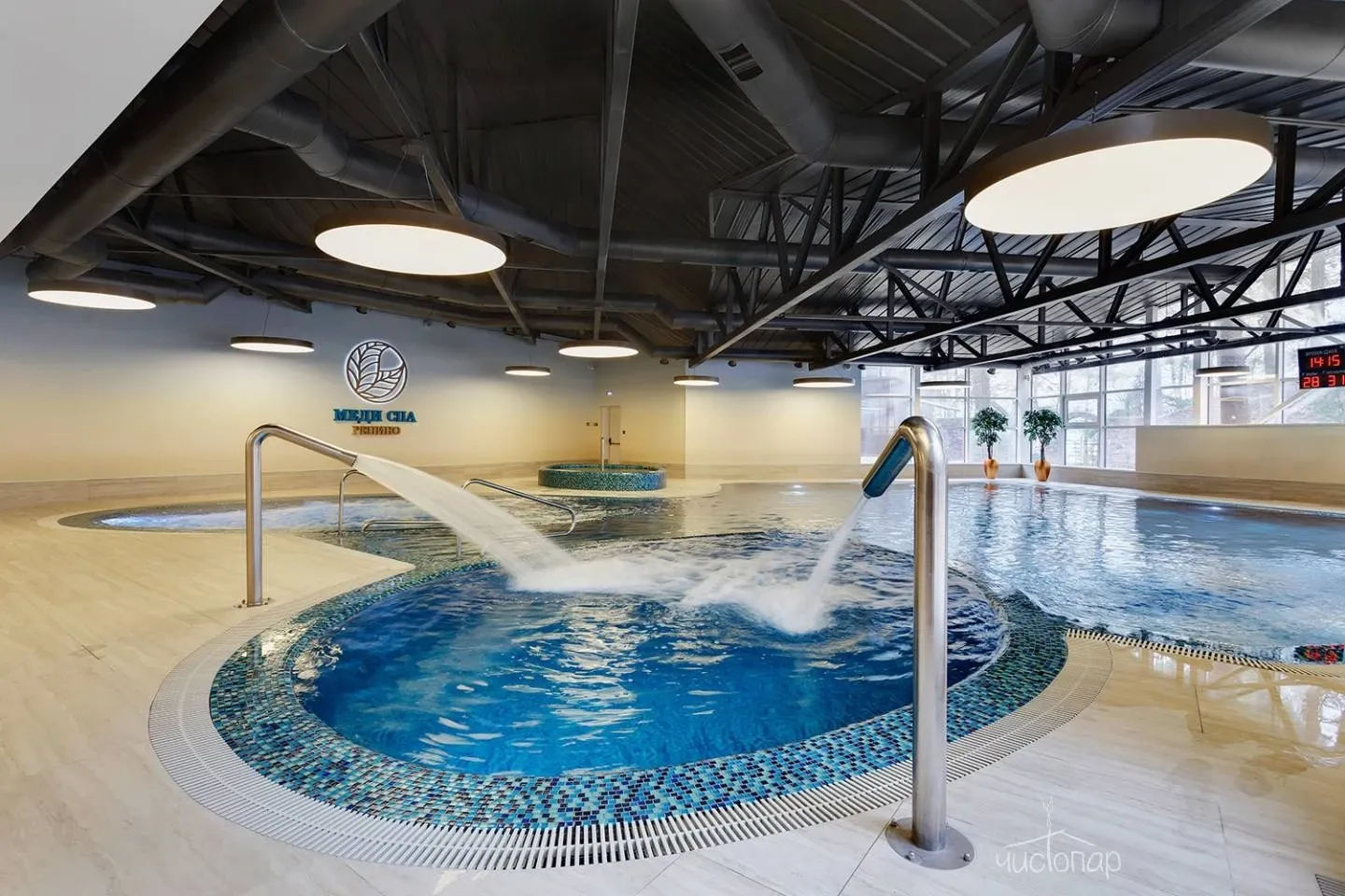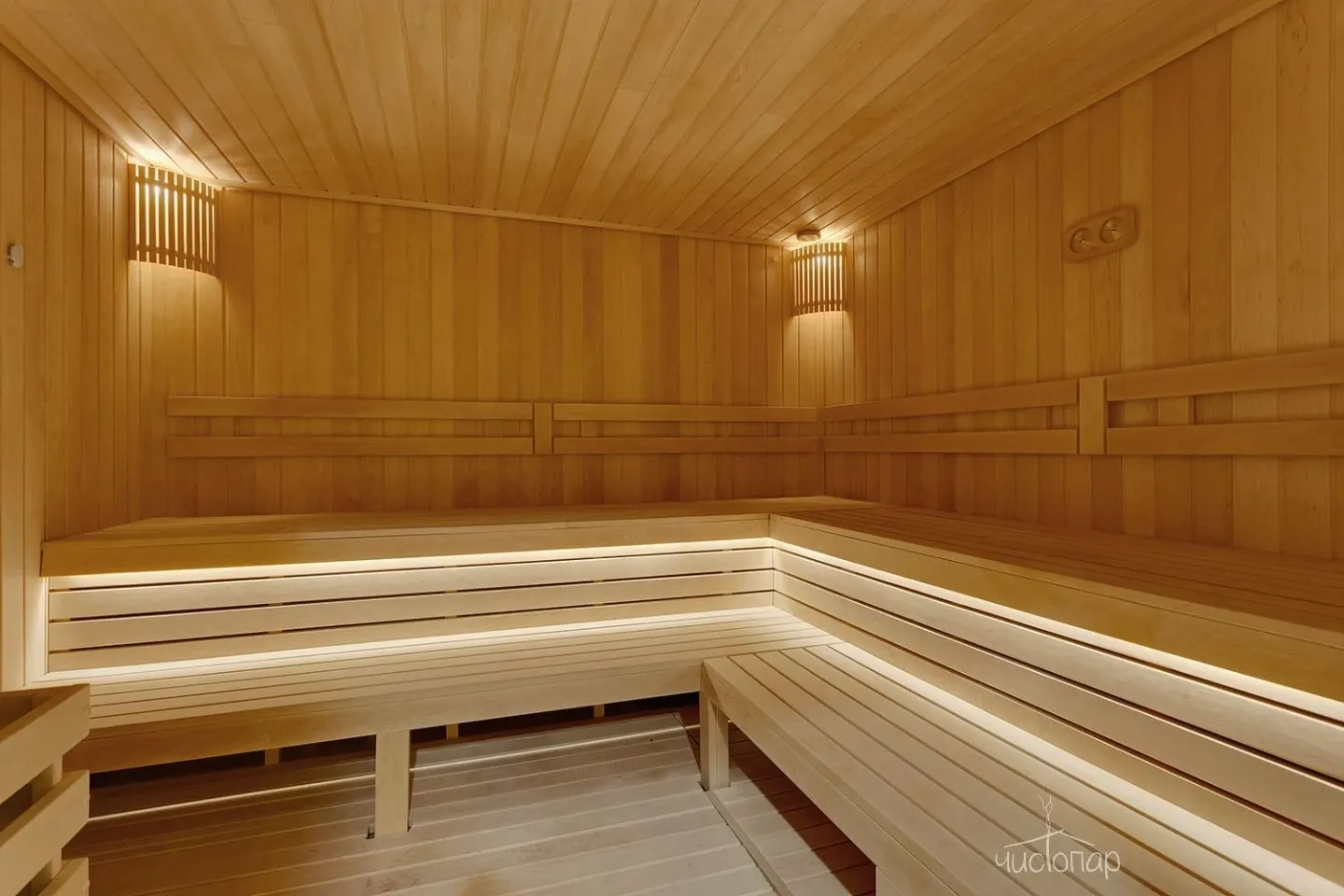 В распоряжении гостей аквазона и комплекс саун, в которые входят: бассейн с гидромассажными лагунами и лежаками, финская парная, русская парная и турецкая парная, зона отдыха с шезлонгами и бассейн для маленьких гостей.