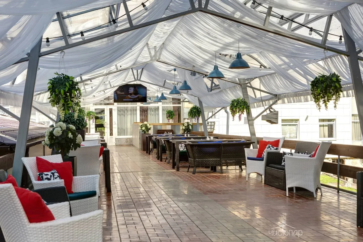На территории парка новый ресторан "Артишок" с летней террасой, лобби бар, развлекательный комплекс с игровыми аппаратами, боулинг, бильярд, караоке-комната "Мармелад", спортивные и детские площадки, прокат спортивного инвентаря и детская анимация.