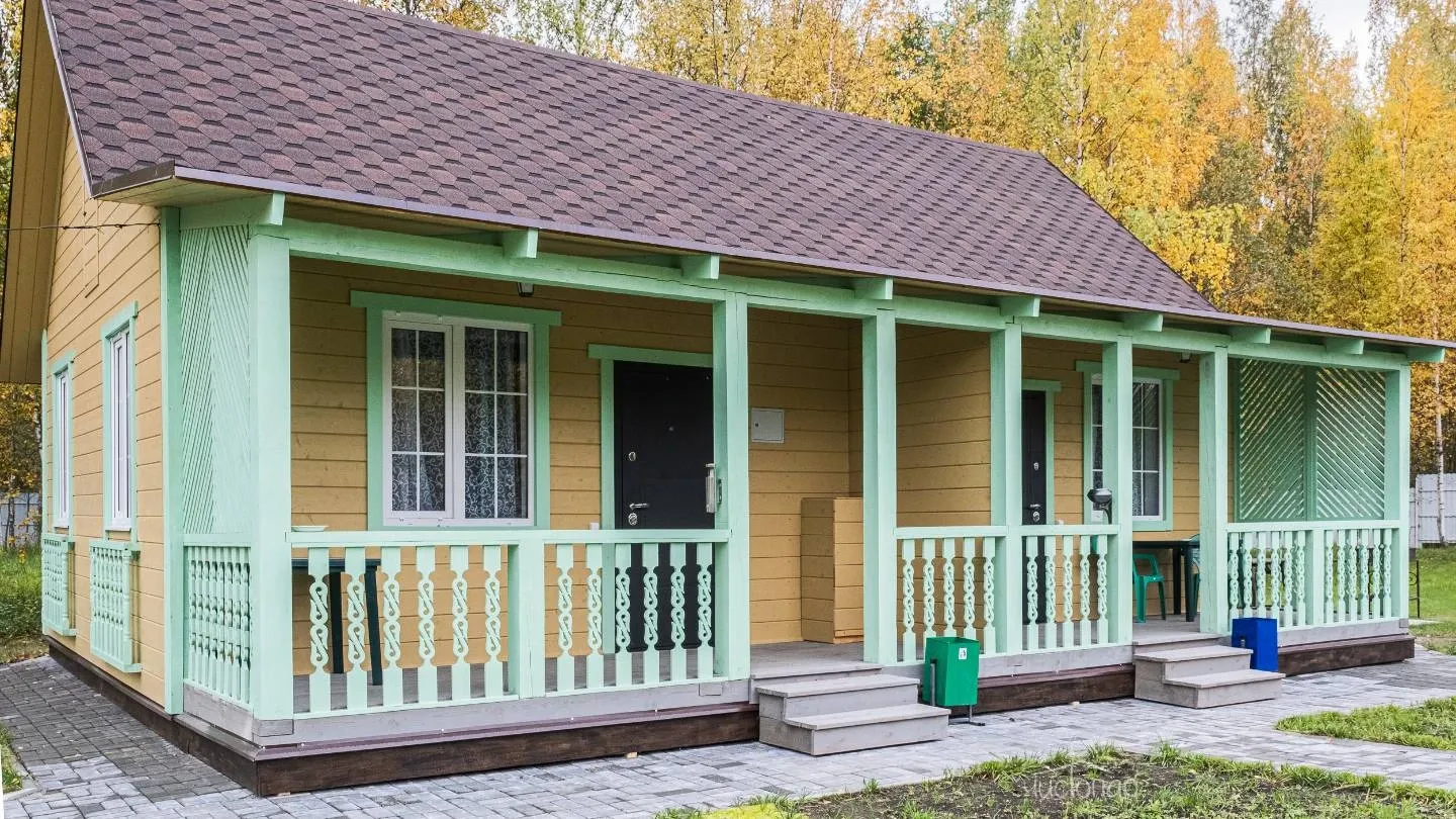Одноэтажный дом в грузинском стиле, состоящий из двух апартаментов, с отдельными входами. У каждого апартамента своя терраса, мангал, стоянка для машин.