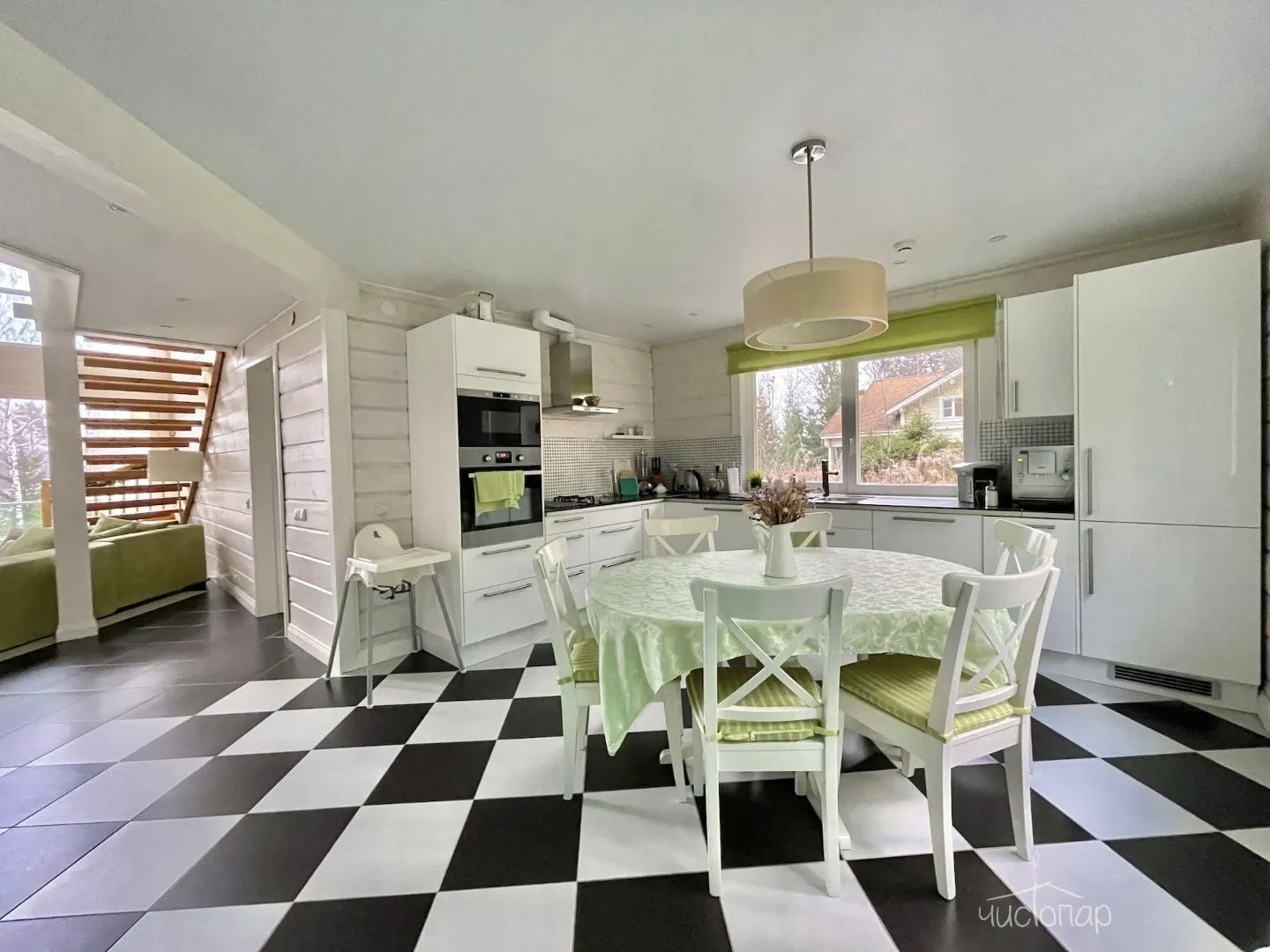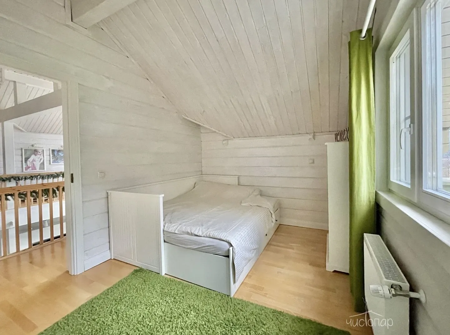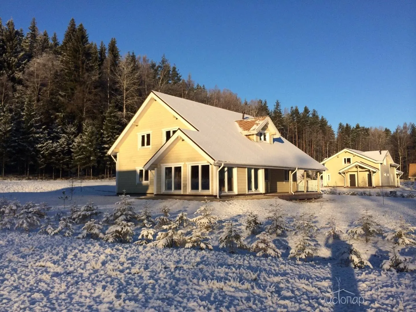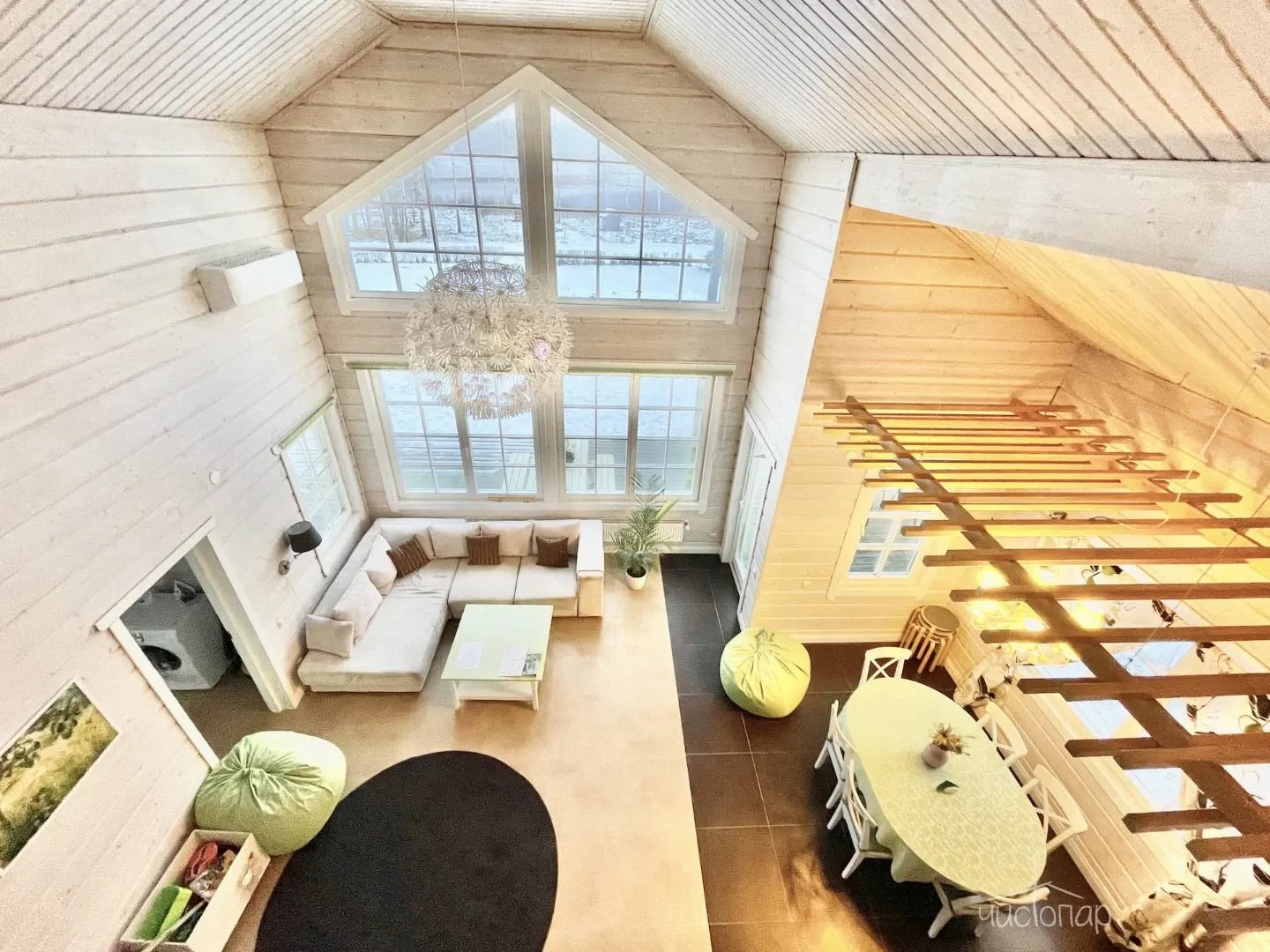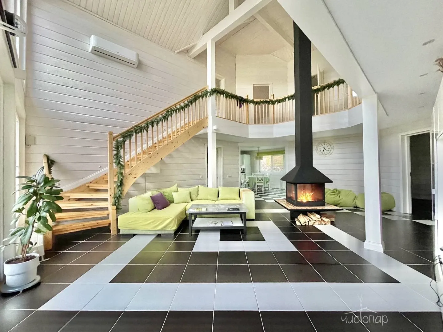 1 этаж - прихожая, кухня-столовая (газовая плита, духовка, холодильник, посудомоечная машина, стиральная машина, микроволновая печь, чайник, тостер, посуда для приготовления и сервировки на 8 персон), гостиная с камином, кондиционер, 1 спальня с двуспальной кроватью, 1 спальня с 2 односпальными кроватями, санузел с душем, сауна, большая терраса.