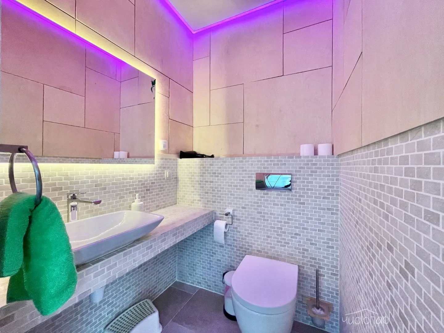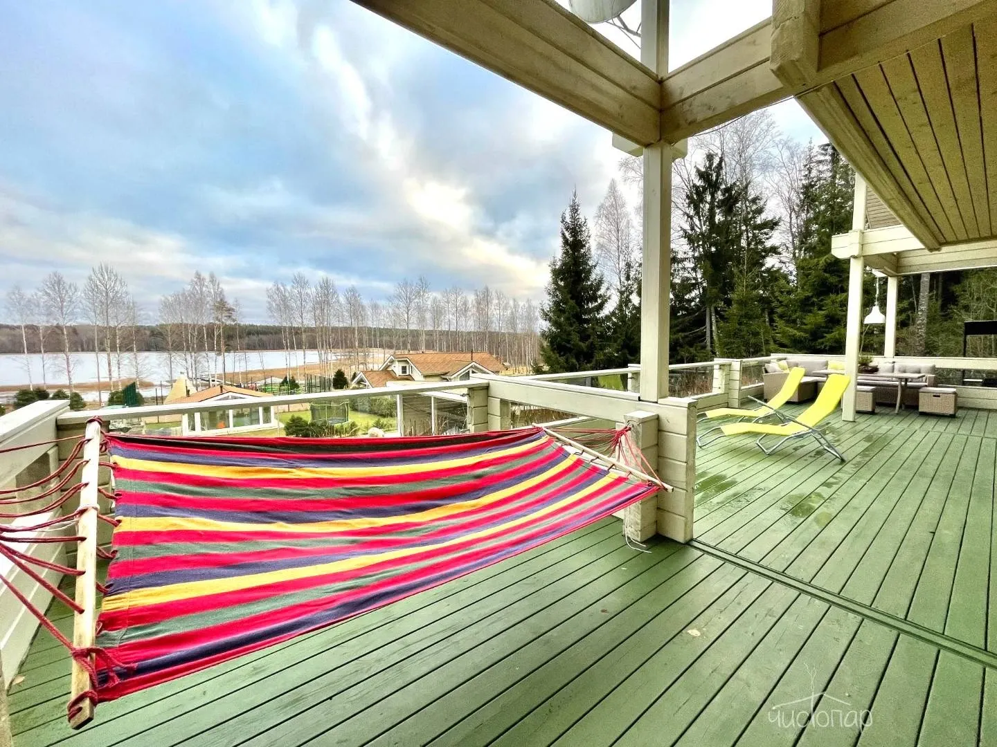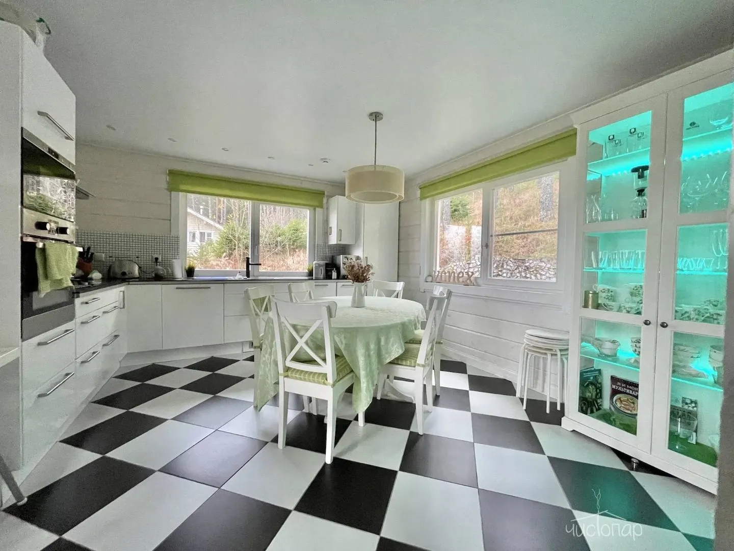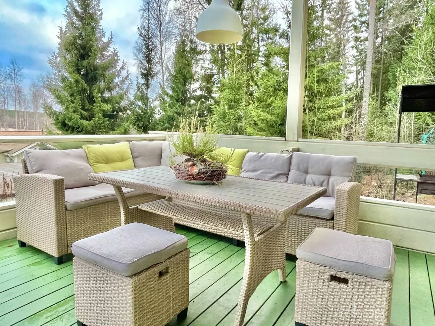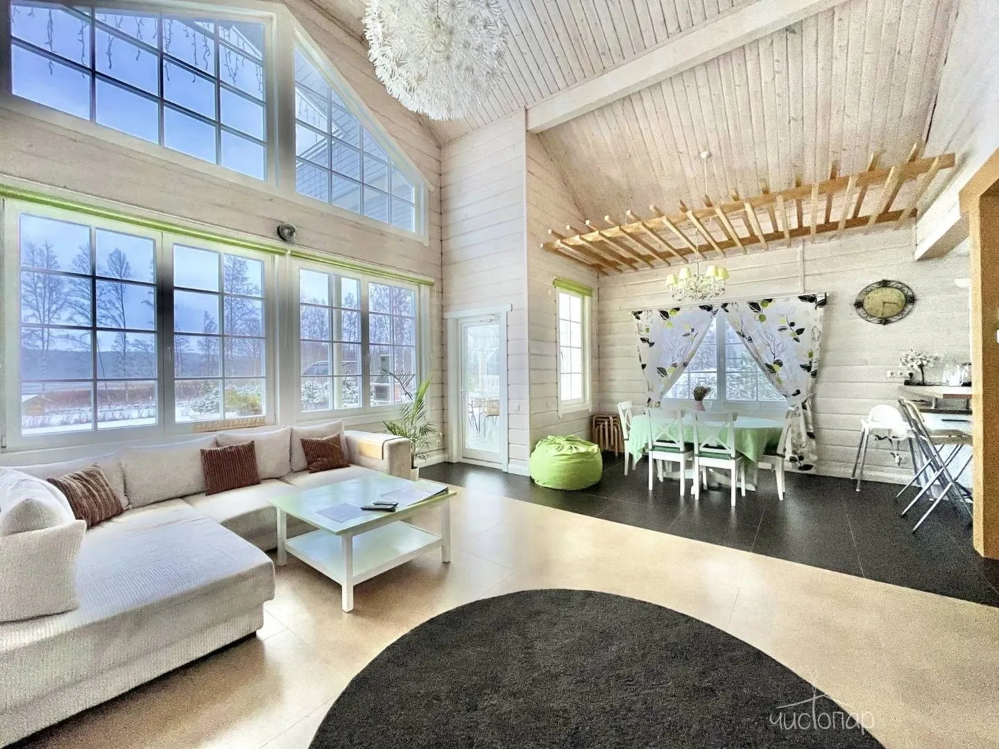 1 этаж - прихожая, кухня-столовая (газовая плита, духовка, холодильник, посудомоечная машина, стиральная машина, микроволновая печь, чайник, тостер, посуда для приготовления и сервировки на 8 персон), гостиная с камином, кондиционер, 1 спальня с двуспальной кроватью, 1 спальня с 2 односпальными кроватями, санузел с душем, сауна, большая терраса.