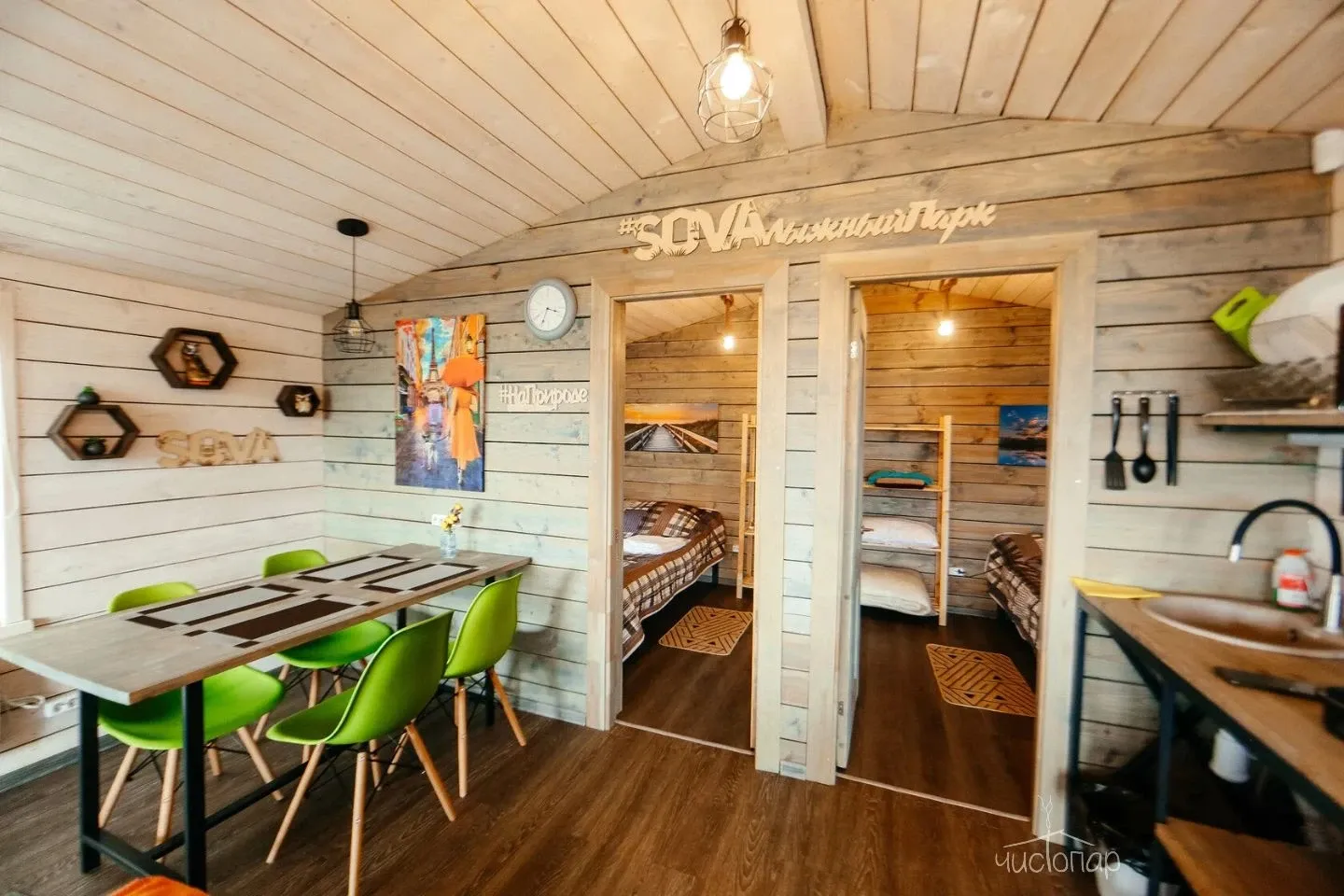 На всех локациях есть коттеджи для размещения.
