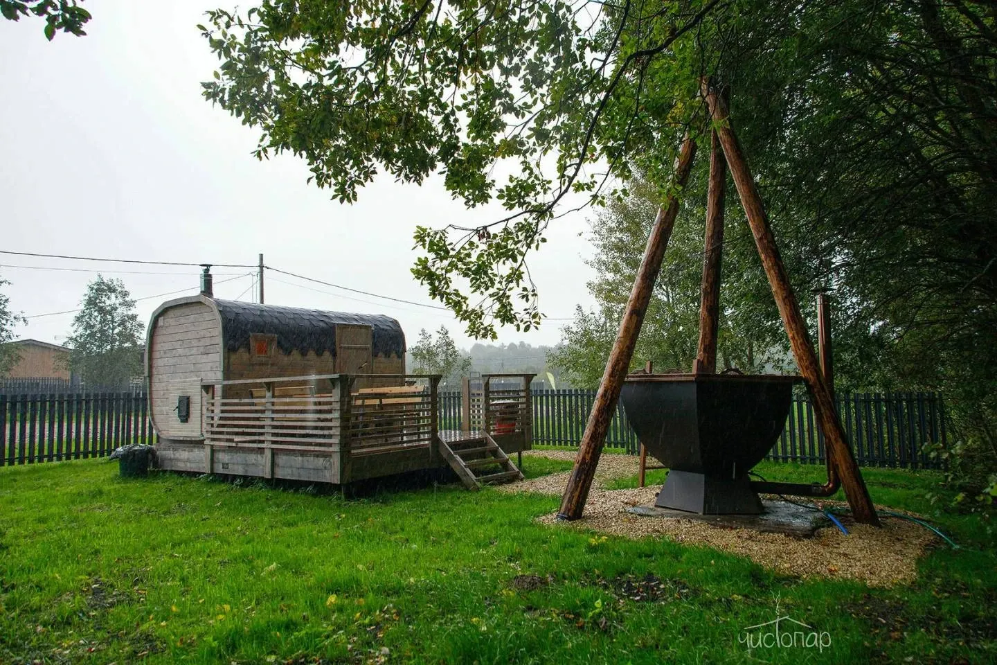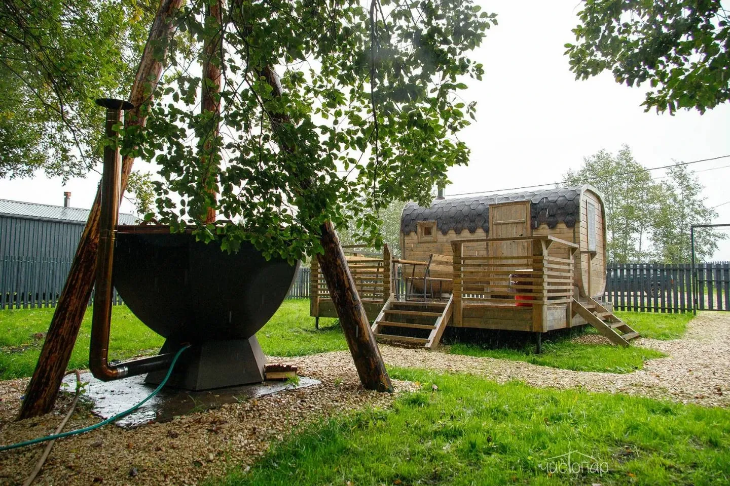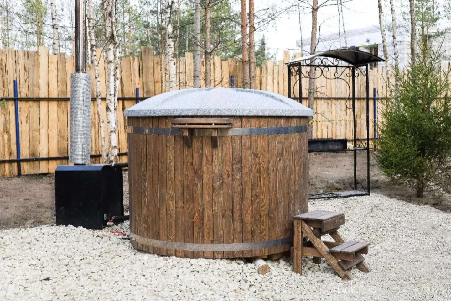 Банные чаны и купели с подогревом для принятия ванн на свежем воздухе (часть локаций).